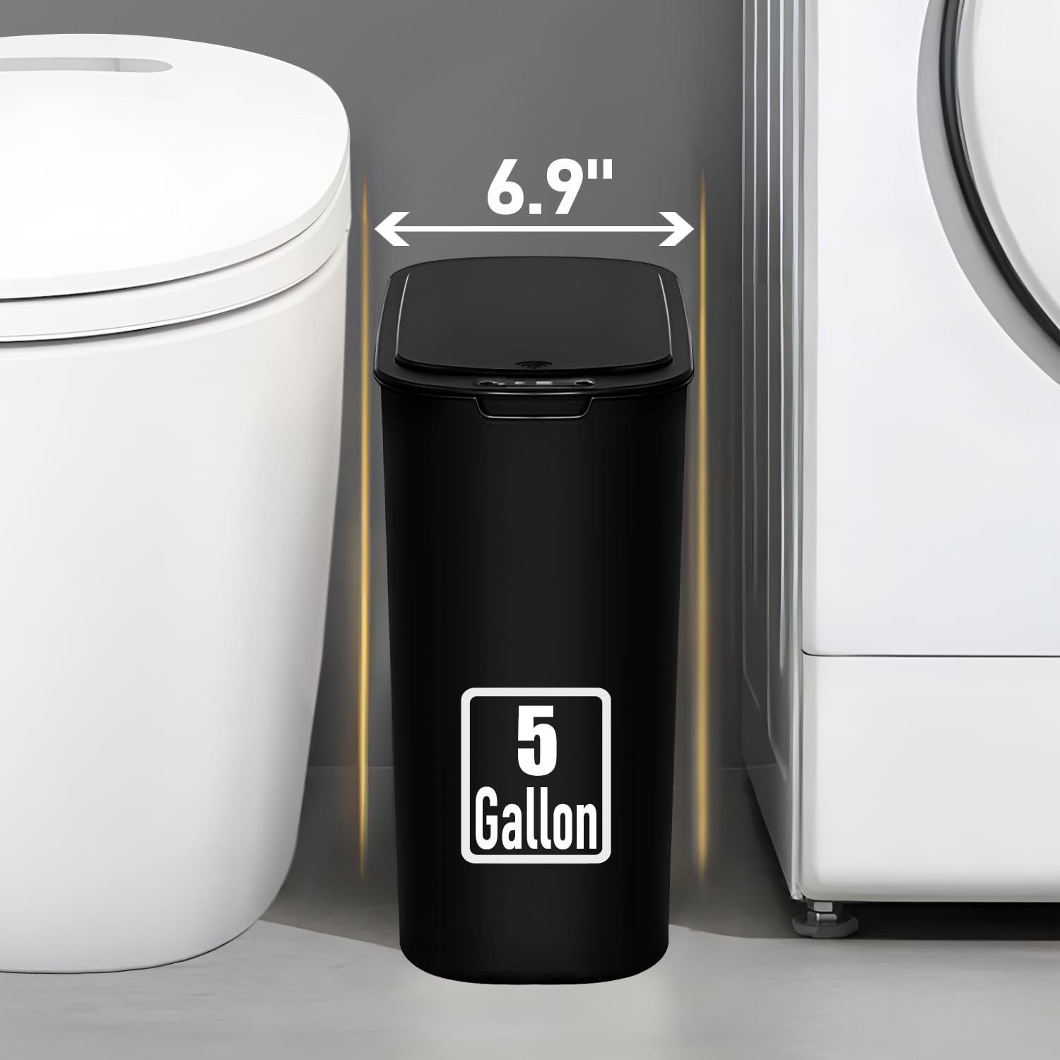 5 Gallon Motion Senor Bathroom Trash Can with Lid, Automatic Garbage Can Touchless, Smart Plastic Waste Basket for Narrow Spaces, Bathroom, Office, Bedroom, Living Room (Black)