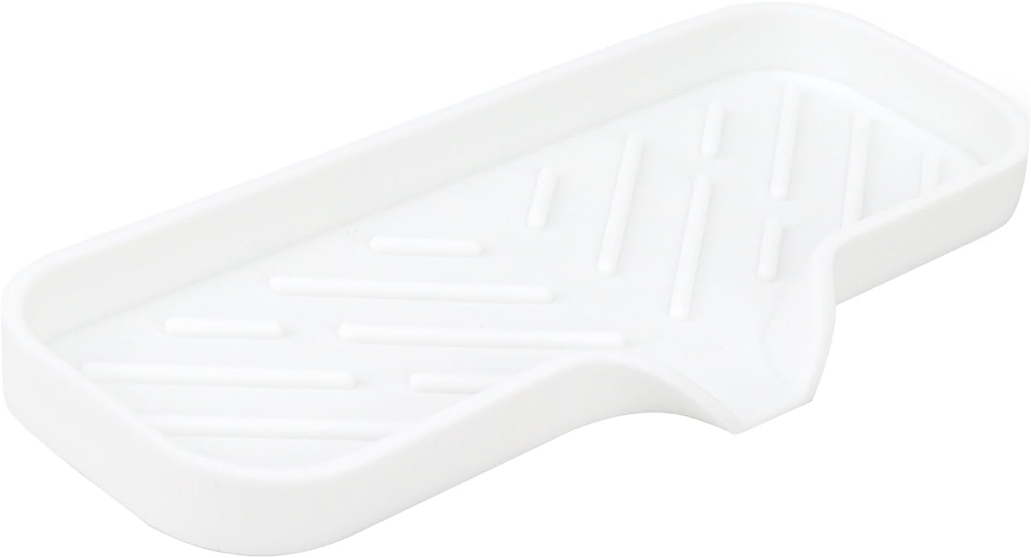 Silicone Bathroom Soap Dishes, Sponge Holder for Kitchen Sink, Shower Soap Holder with Drain, Soap Dispenser Tray, Soap Dish for Bottle, Cup, Sink or Counter Organizer - White 9" x 3.15"