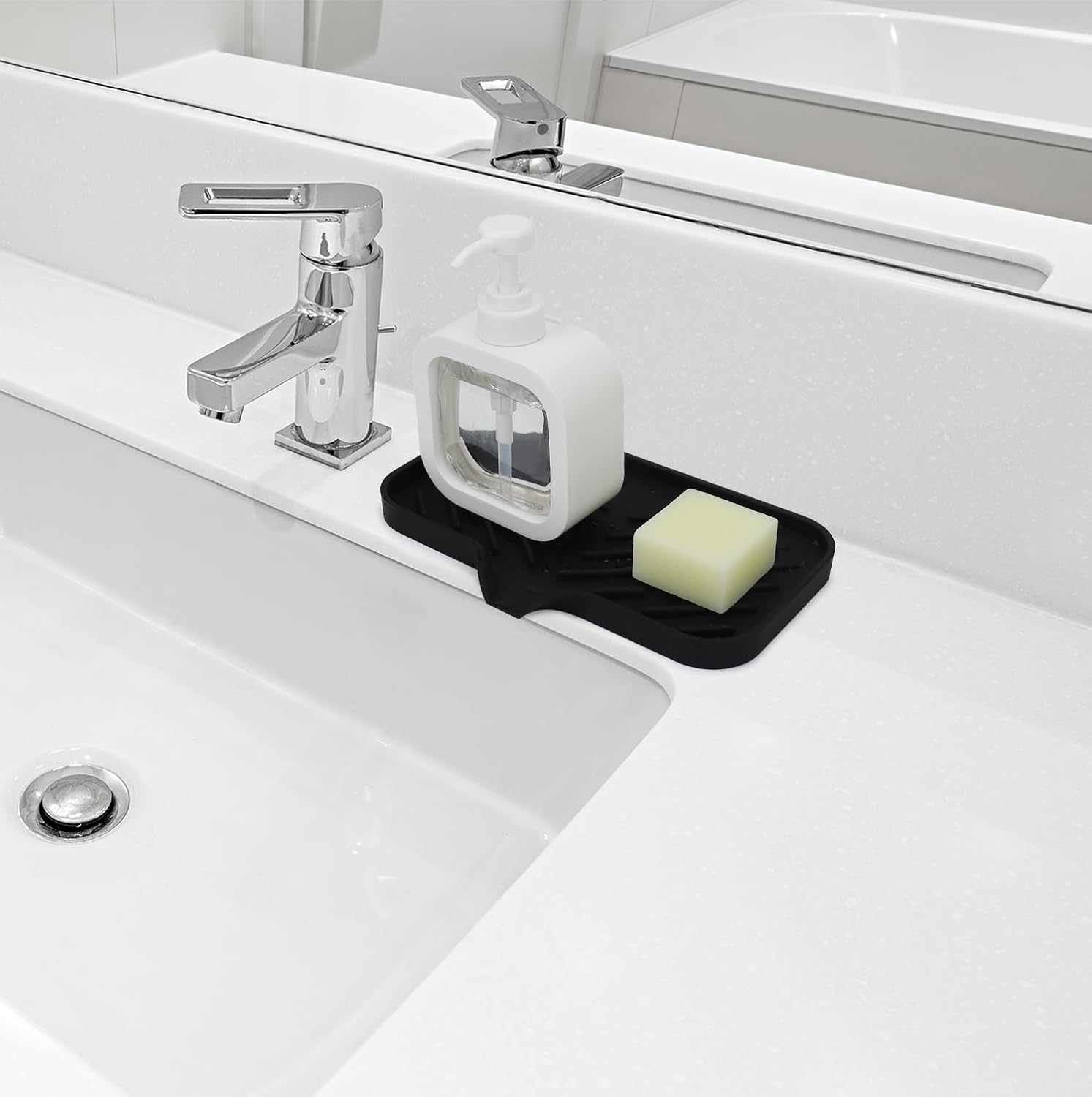 • ★Prevent Items From Sliding: The Silicone Sink Tray has a raised edge and an anti-skid base that prevent your items from sliding or falling off. You can keep your soap or sponge securely and firmly in place without worrying about them slipping into the sink or onto the floor.