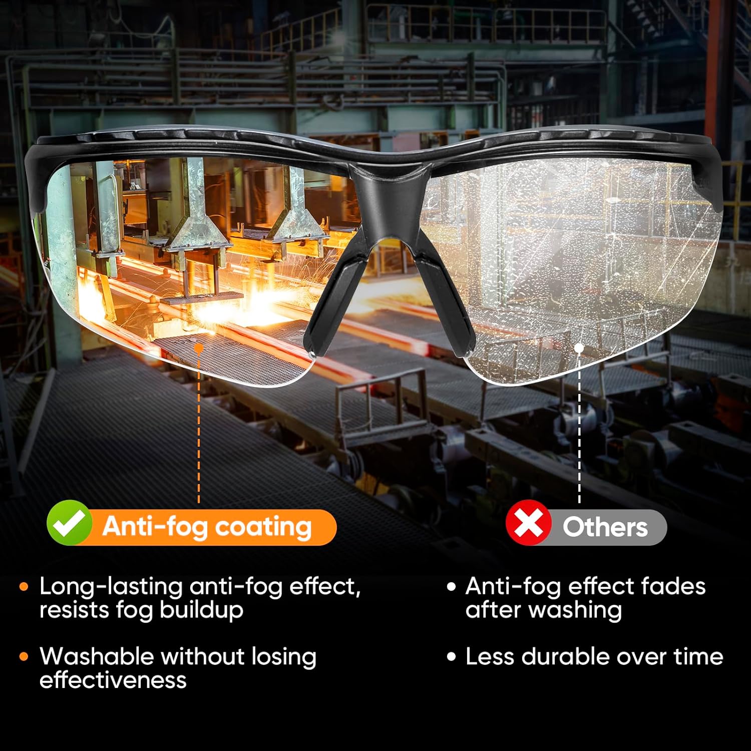 • [ANTI-FOG & UV PROTECTION] Equipped with scratch-resistant, anti-fog properties, these safety goggles utilize professional anti-fog coatings, maintaining clarity in diverse environments. Moreover, they effectively block 99.9% of harmful UV rays