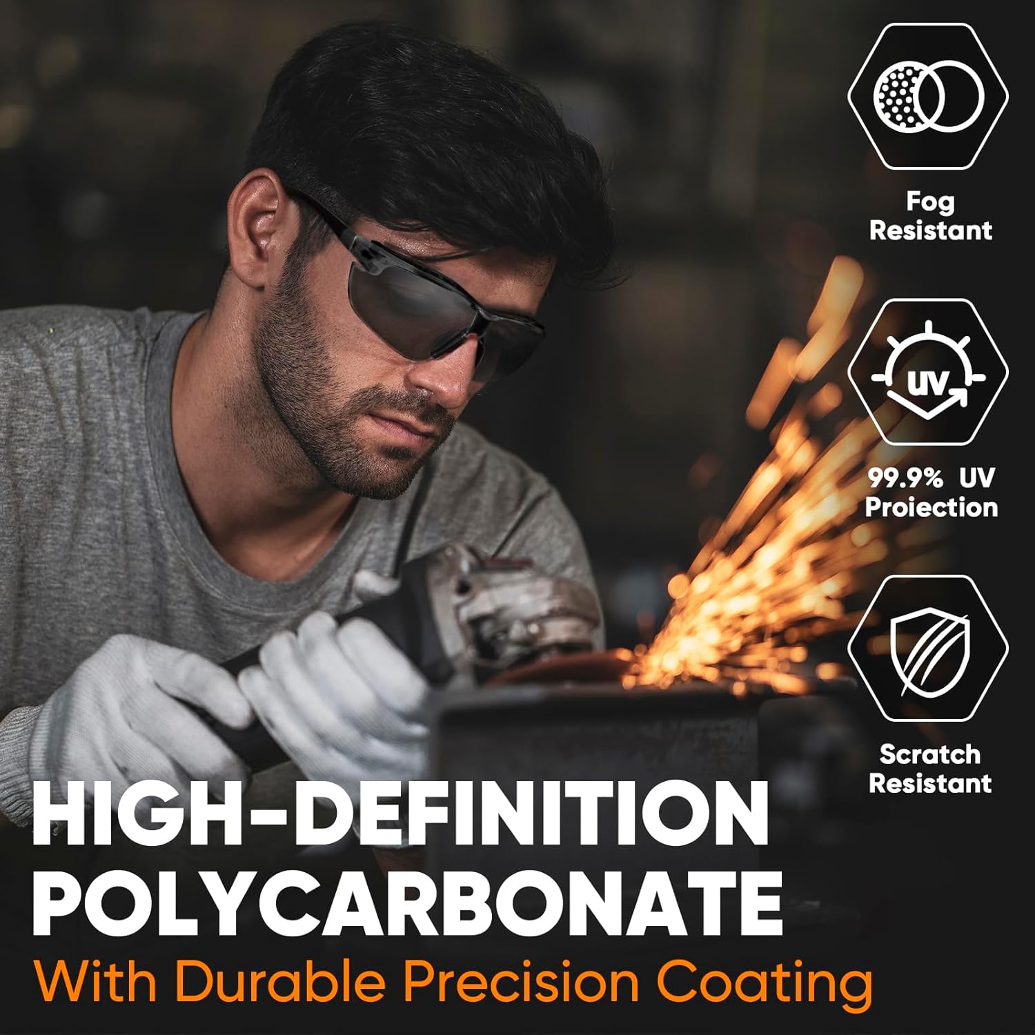 • [DURABLE AND LIGHTWEIGHT] Crafted with premium polycarbonate, these safety glasses have exceptional durability and impact resistance while remaining lightweight. They meet ANSI Z87.1 standards and feature a wraparound design for panoramic coverage.