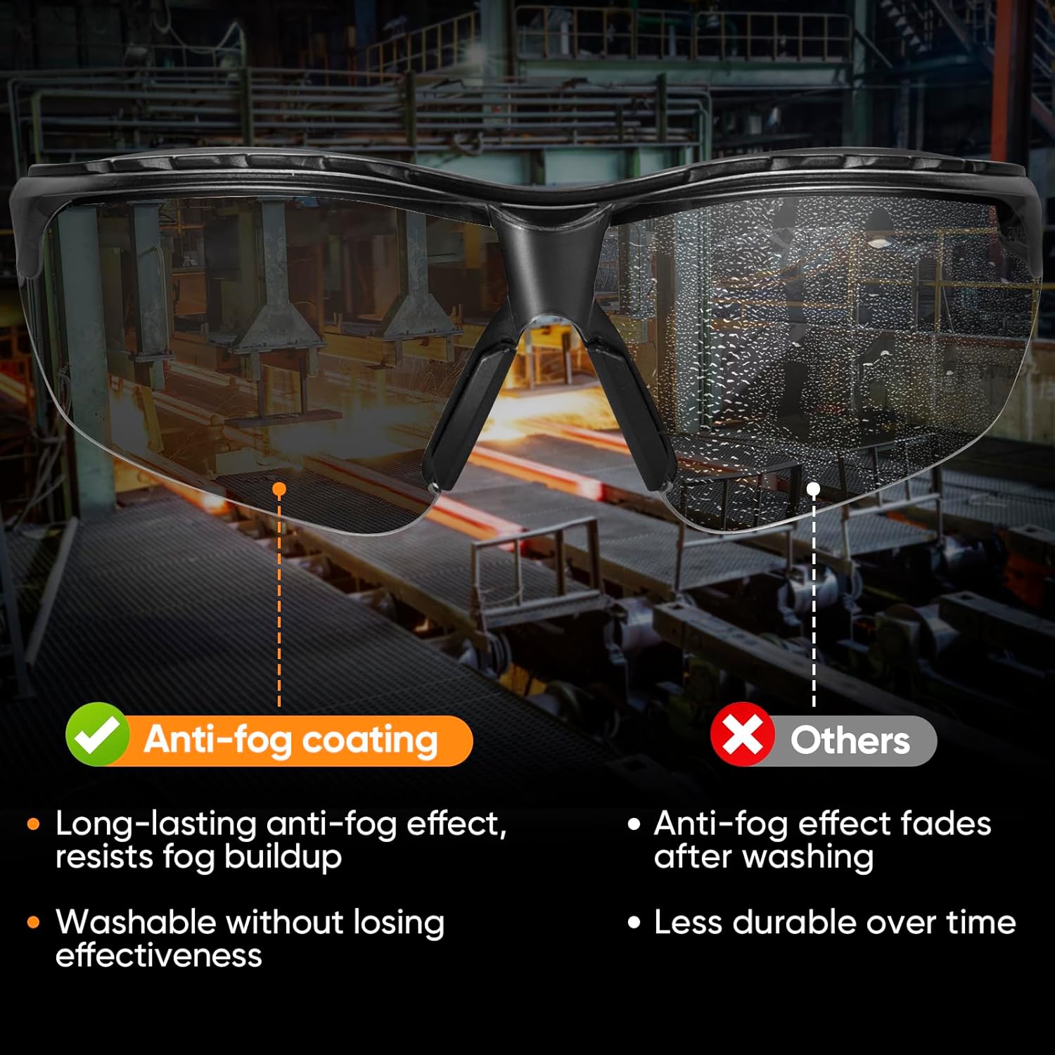 • [ANTI-FOG & UV PROTECTION] Equipped with scratch-resistant, anti-fog properties, these safety goggles utilize professional anti-fog coatings, maintaining clarity in diverse environments. Moreover, they effectively block 99.9% of harmful UV rays.