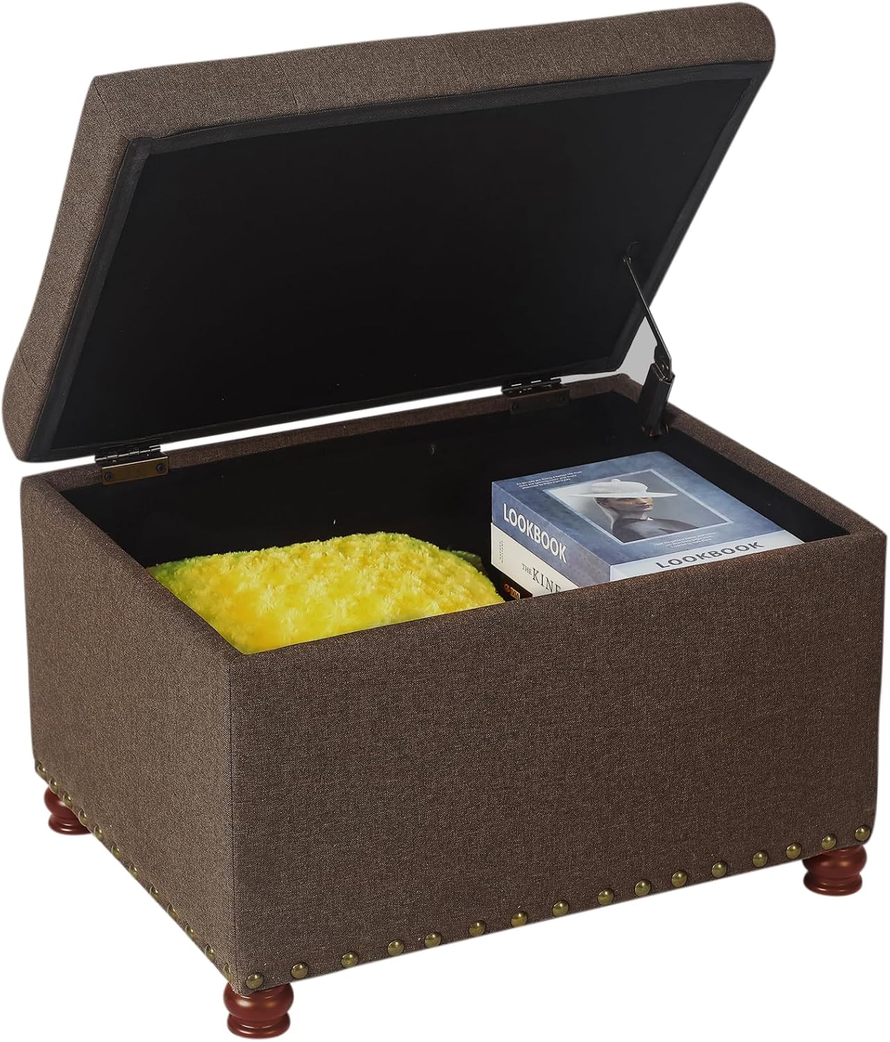 • Classical Design Style: Wood frame, red brown wooden legs and nailhead Trim, tufted lift top makes this ottoman more elegant and noble.