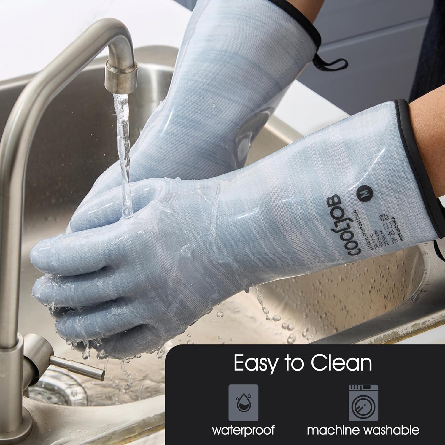 COOLJOB Heat Resistant Oven Gloves, Waterproof Liquid Silicone BBQ Grilling Gloves for Barbecue, Kitchen Cleaning, Baking, Blue, Medium