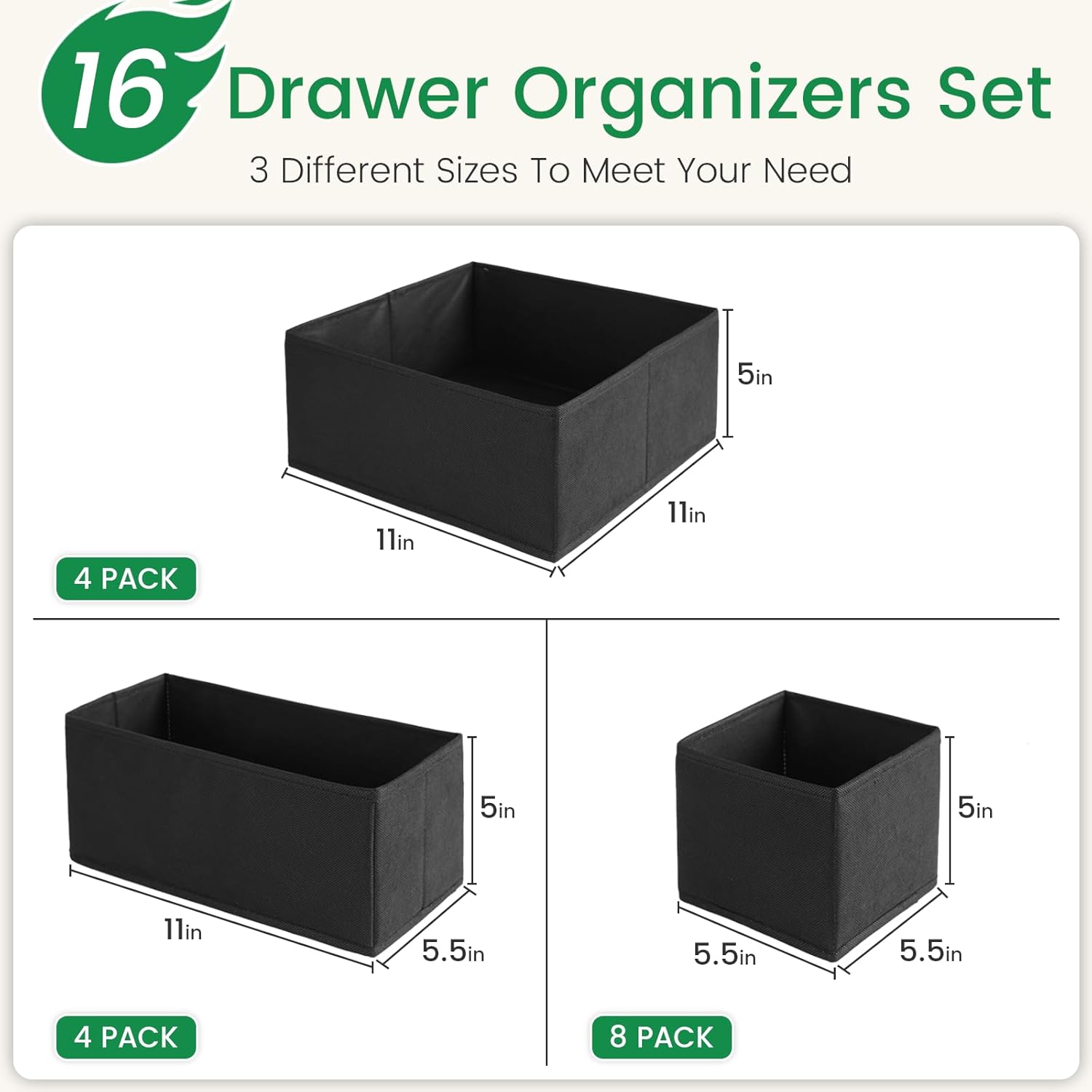 Criusia 16 Pack Underwear Drawer Organizer, Drawer Organizer Clothes, Foldable Cloth Storage Box Closet Dresser Drawer Divider Organizer for Clothes, Scarves (Black)
