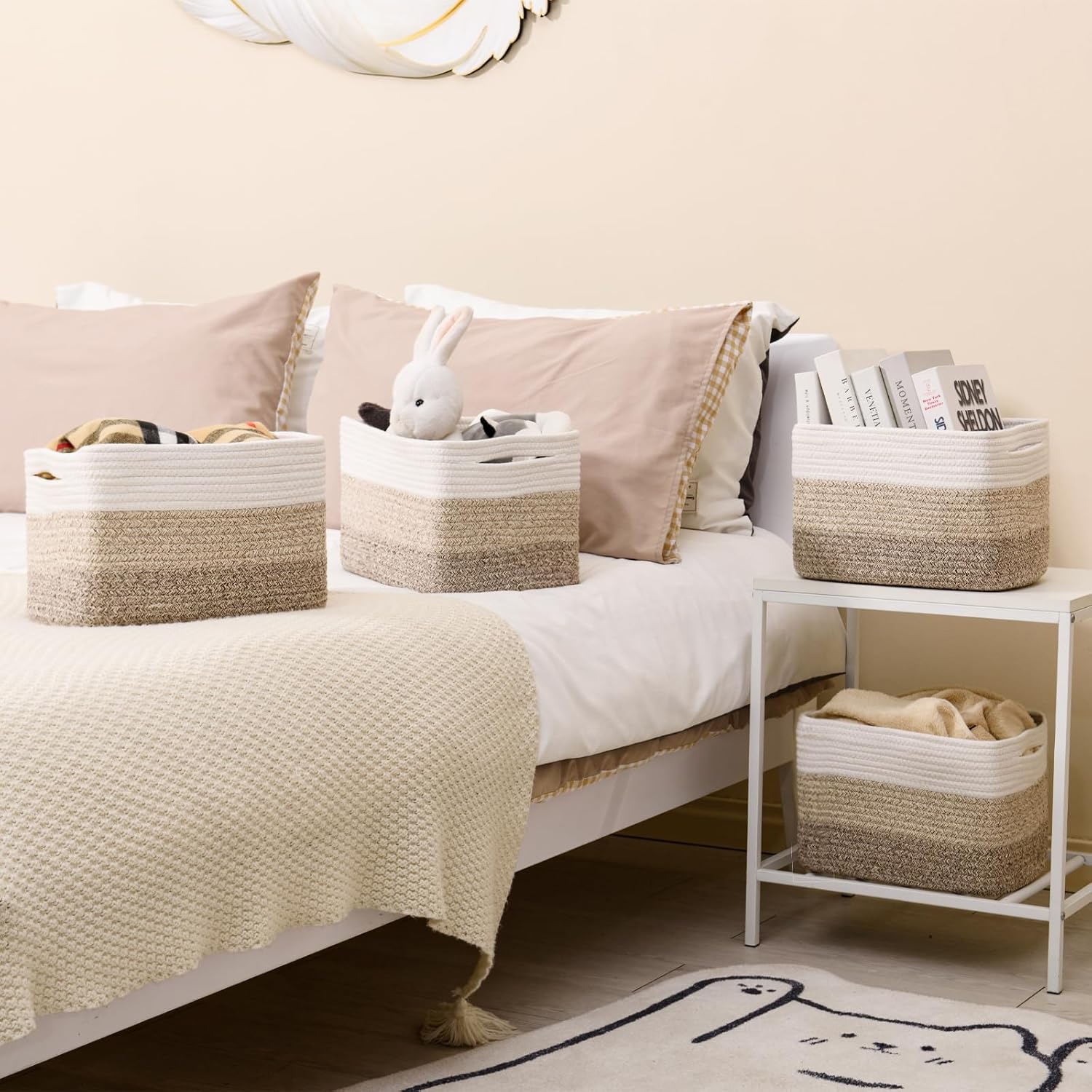 • SPACE SAVING SOLUTION: ICERZCZ 4 Pack cotton rope basket compact size and large storage capacity will help you maximize available space while keeping your belongings organized and easily accessible at all times