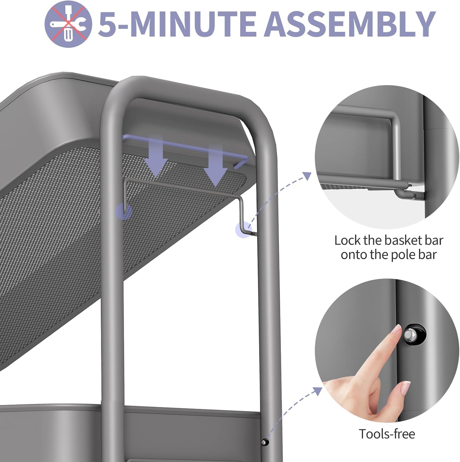 • Quick and Easy Assembly – Measuring 17.3" L x 12" W x 31.1" H, this rolling cart requires no tools for assembly. Set it up effortlessly and start organizing immediately, whether as a diaper cart, book cart, or stylish bathroom cart.