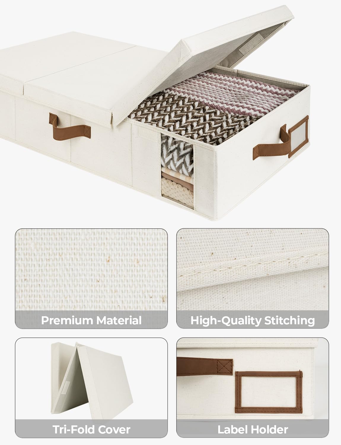 • Clear Window: The underbed storage bins feature a transparent window on the side. It offers a quick and hassle-free way to identify the box's content without opening it.