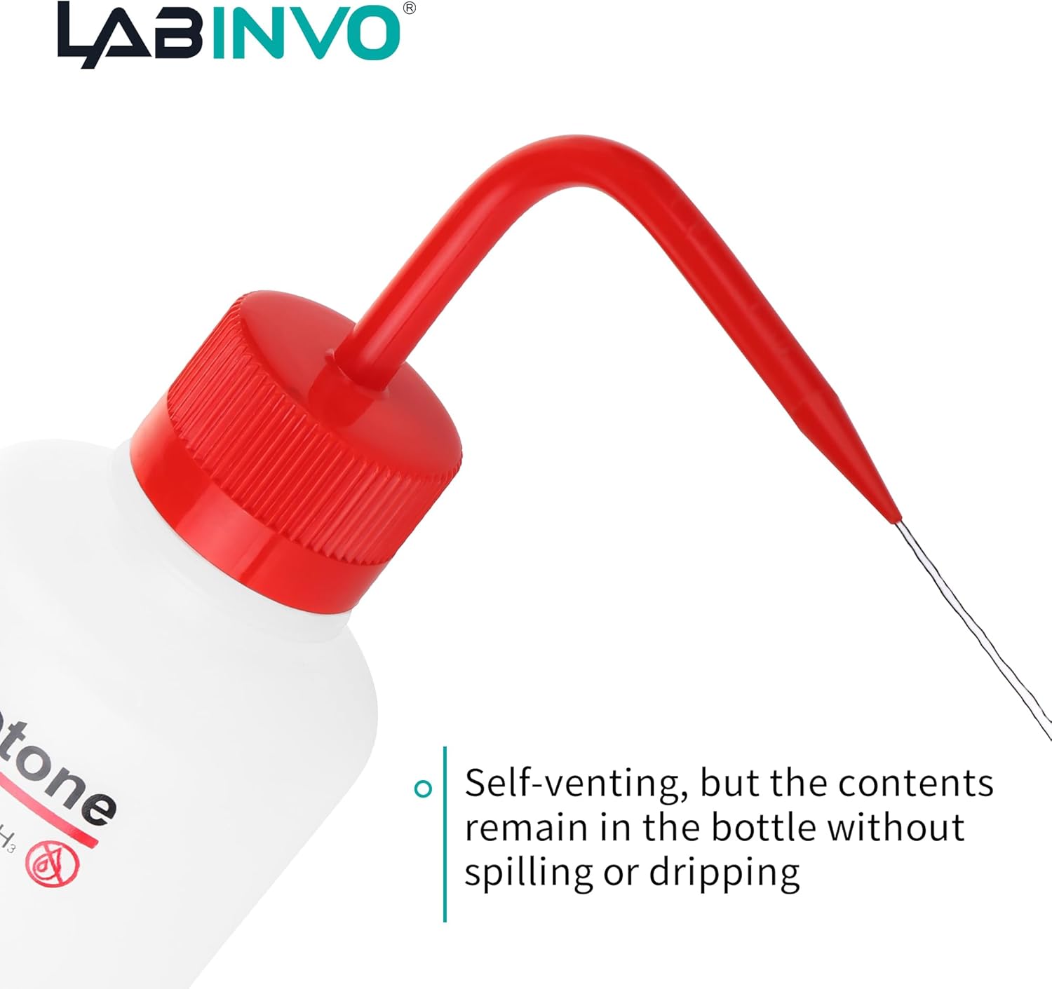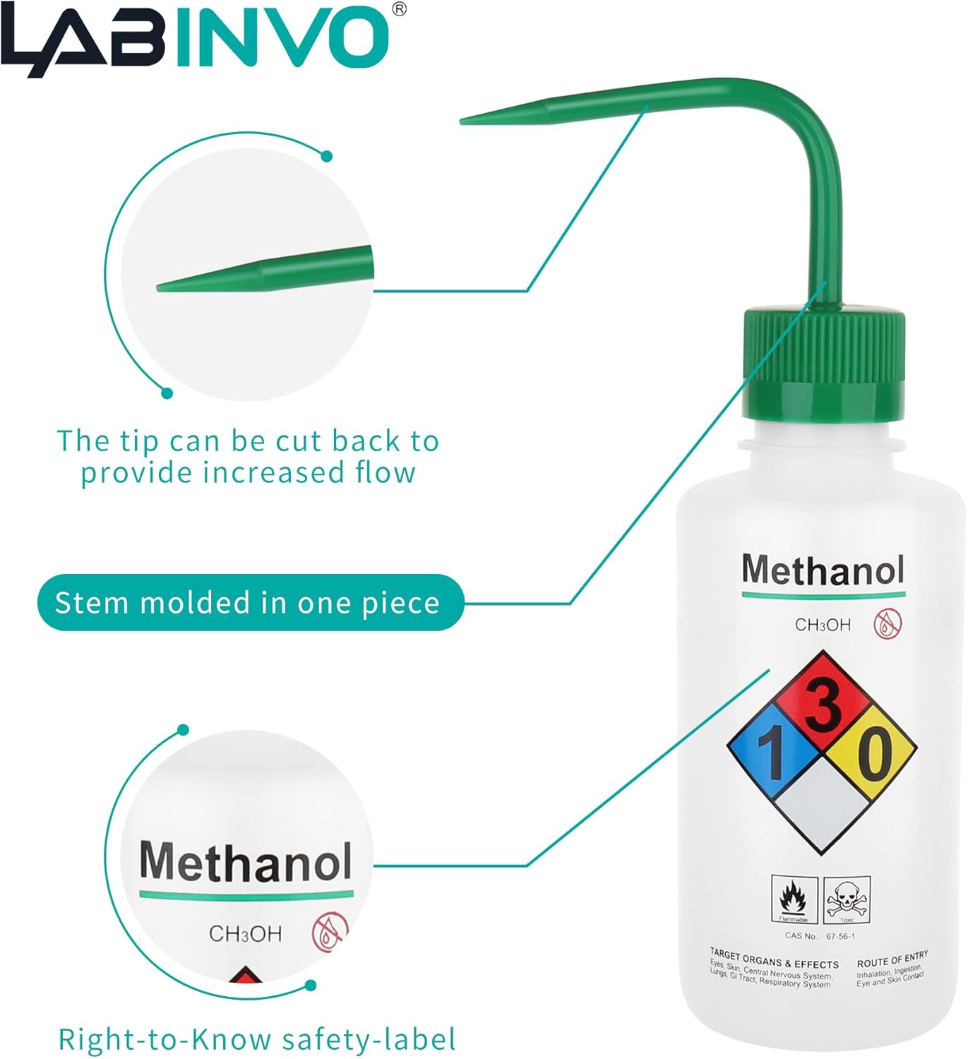 • Capacity: 6pcs of 500ml (17oz), each 1PC of acetone wash bottle , Ethyl alcohol wash bottle , Methanol wash bottle, Isopropanol wash bottle, Distilled water wash bottle and Sodium hypochloride wash bottle.