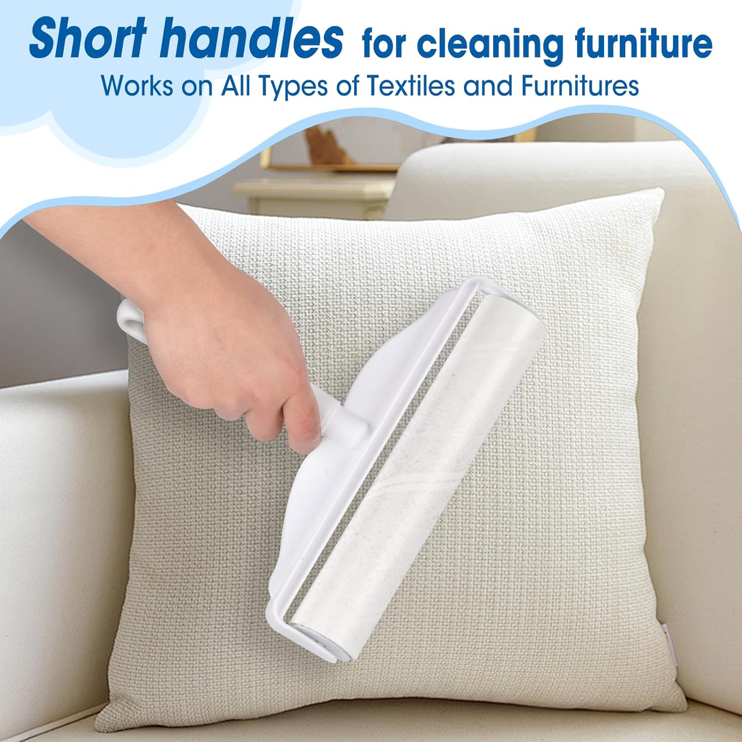 • Adjustable & Flexible: The total length of the sticky roller is 45.2 inches, and it can be provided with four adjustable lengths–45.2 inch, 33 inch, 19.3 inch and 9.5 inch, so it can be easily cleaned without bending over. Different sizes can meet different needs. The short handle can be used for clothes and couch, and the long handle can be used for carpets, floors and curtains. Make sure the whole room is clean, comfortable and relaxed