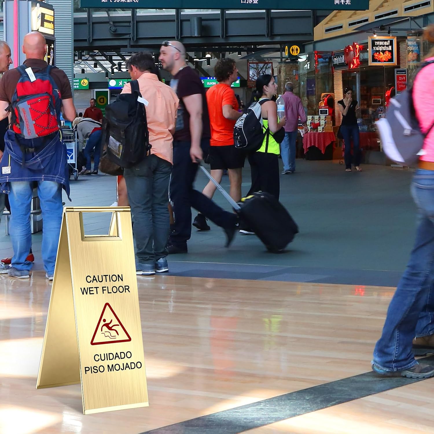 • Bilingual Messaging: these wet floor warn sign shows "caution wet floor" in both English and Spanish, which are suitable for many public places and is effectively alerting customers and employees to use caution while walking in a wet place