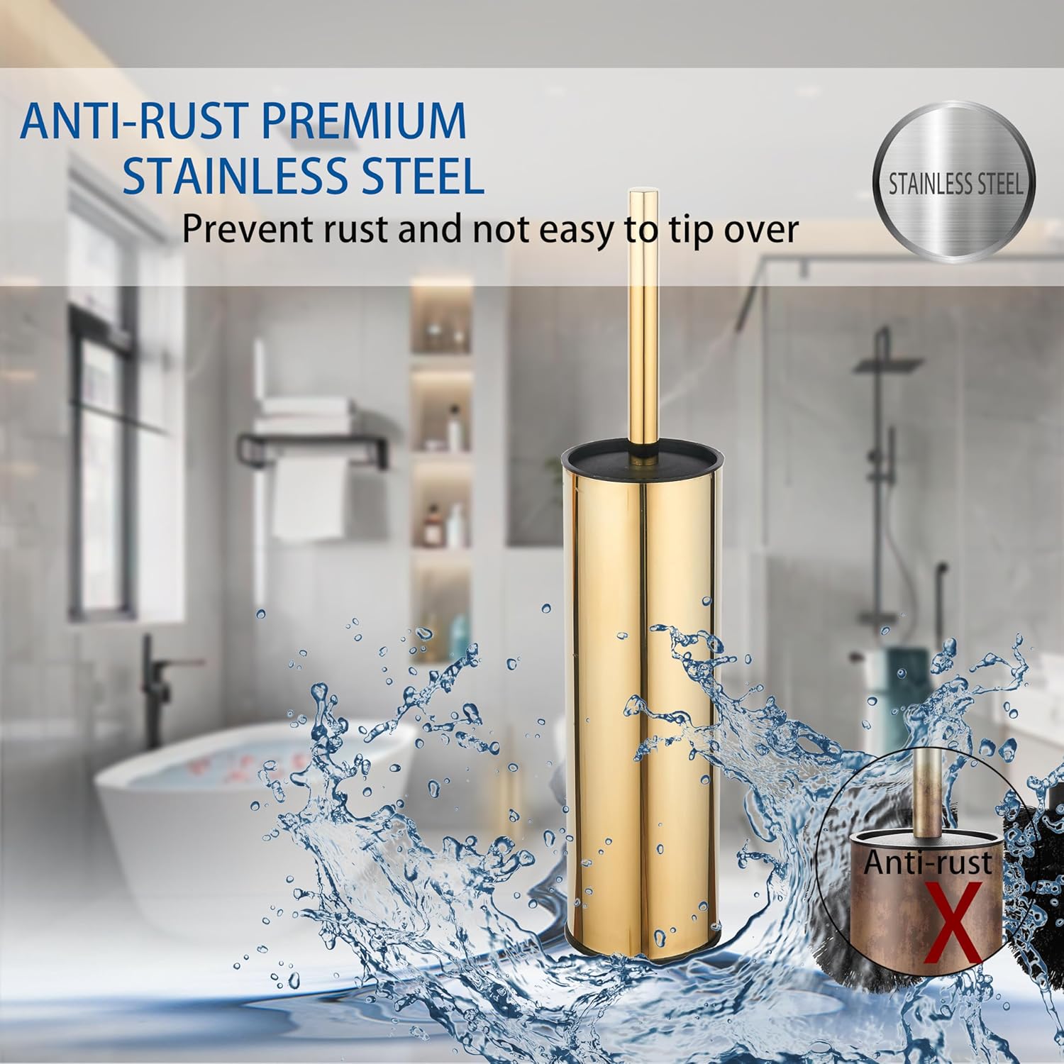 BGL Gold Toilet Brush and Holder, Stainless Steel Toilet Brush with PP Fiber Bristles, Round, 1 Pack