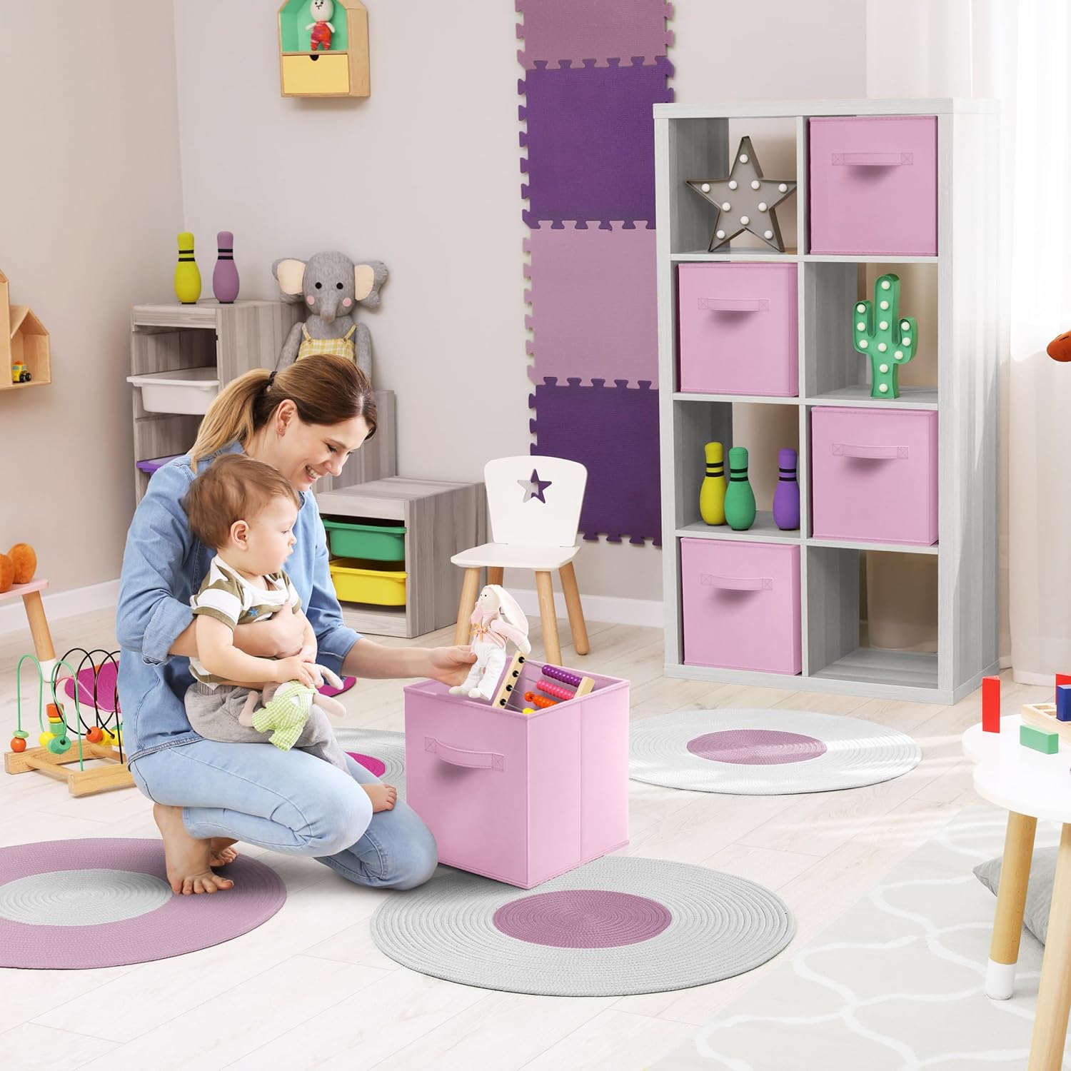 • Cubby Storage Bins Versatile Use: Use the Sorbus cube storage bins in the kid's room, toy storage, family room, laundry area, closet, storage room, etc - Sit Cube Organizer Bins on the floor, in the closet, bookcase, desk, shelving area, and cubbies