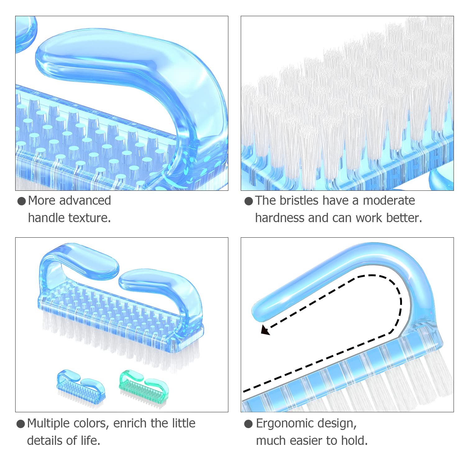 • 【High Quality Material】: These nail brushes' handles are made of sturdy plastic which are not easy to bent. The bristles are made of flexible plastic, not too hard and not too soft which won't scratch your skin. Sturdy for long-term to use.