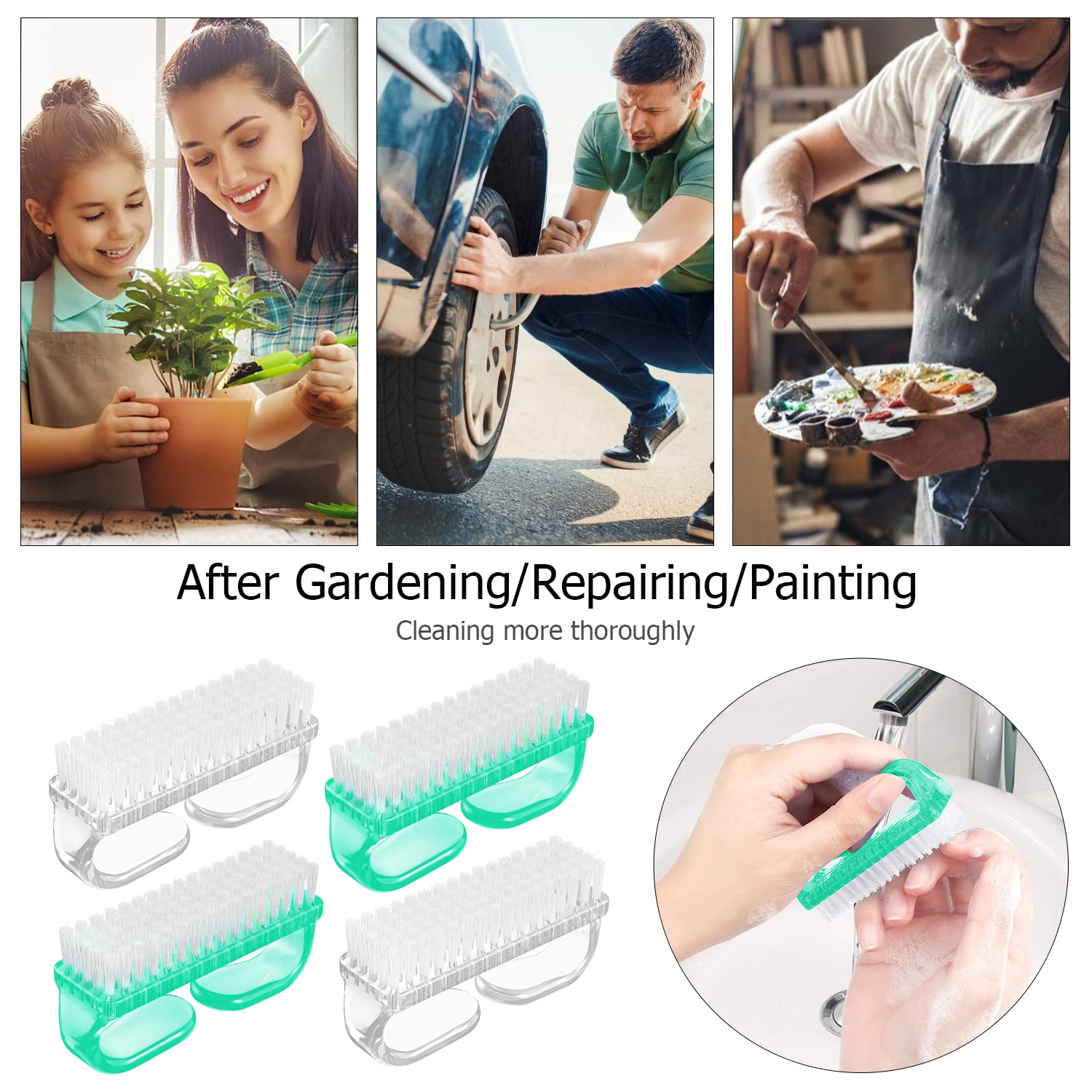 Handle Grip Nail Brush, Hand Fingernail Brush Cleaner Scrubbing Kit Pedicure for Toes and Nails Men Women (4 Pack)