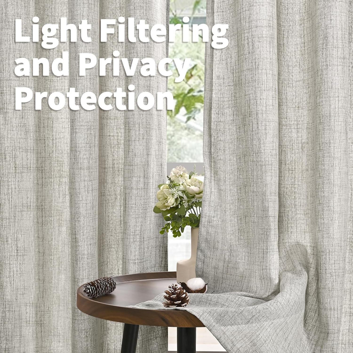 • Linen Blend: Our faux linen curtains are made from linen blend fabric with a premium soft touch, excellent drape and wrinkle-free. Natural and rustic look that adds warmth and texture to any room, suitable for the living room, bedroom, farmhouse, dining room, office and any style space.