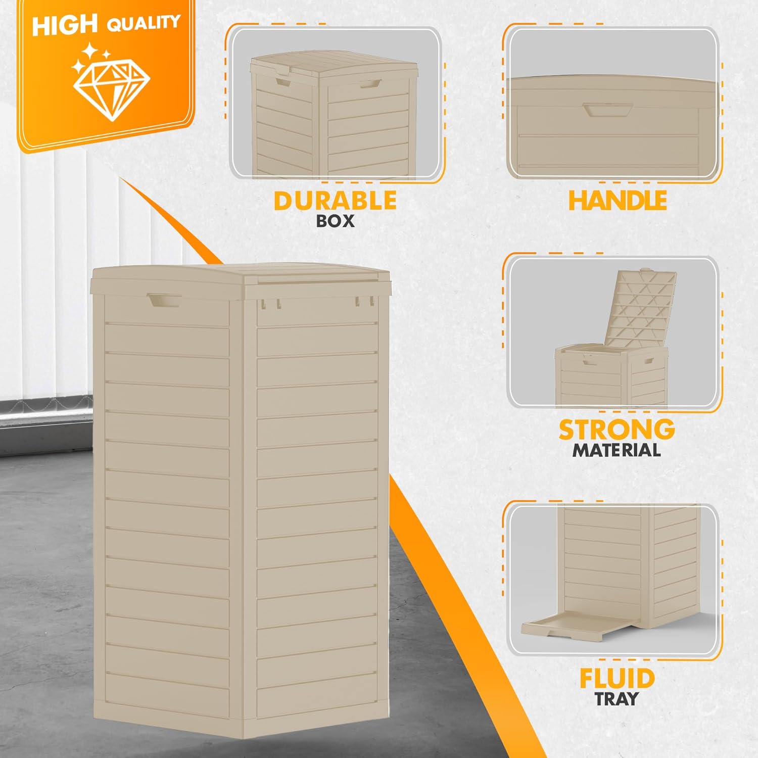 • All-Weather Resin Durability - UV-resistant, non-toxic resin withstands sun, rain, and temperature swings without cracking or fading, ensuring this outdoor trashcan functions flawlessly as both a kitchen trash can indoors and a durable outdoor solution.