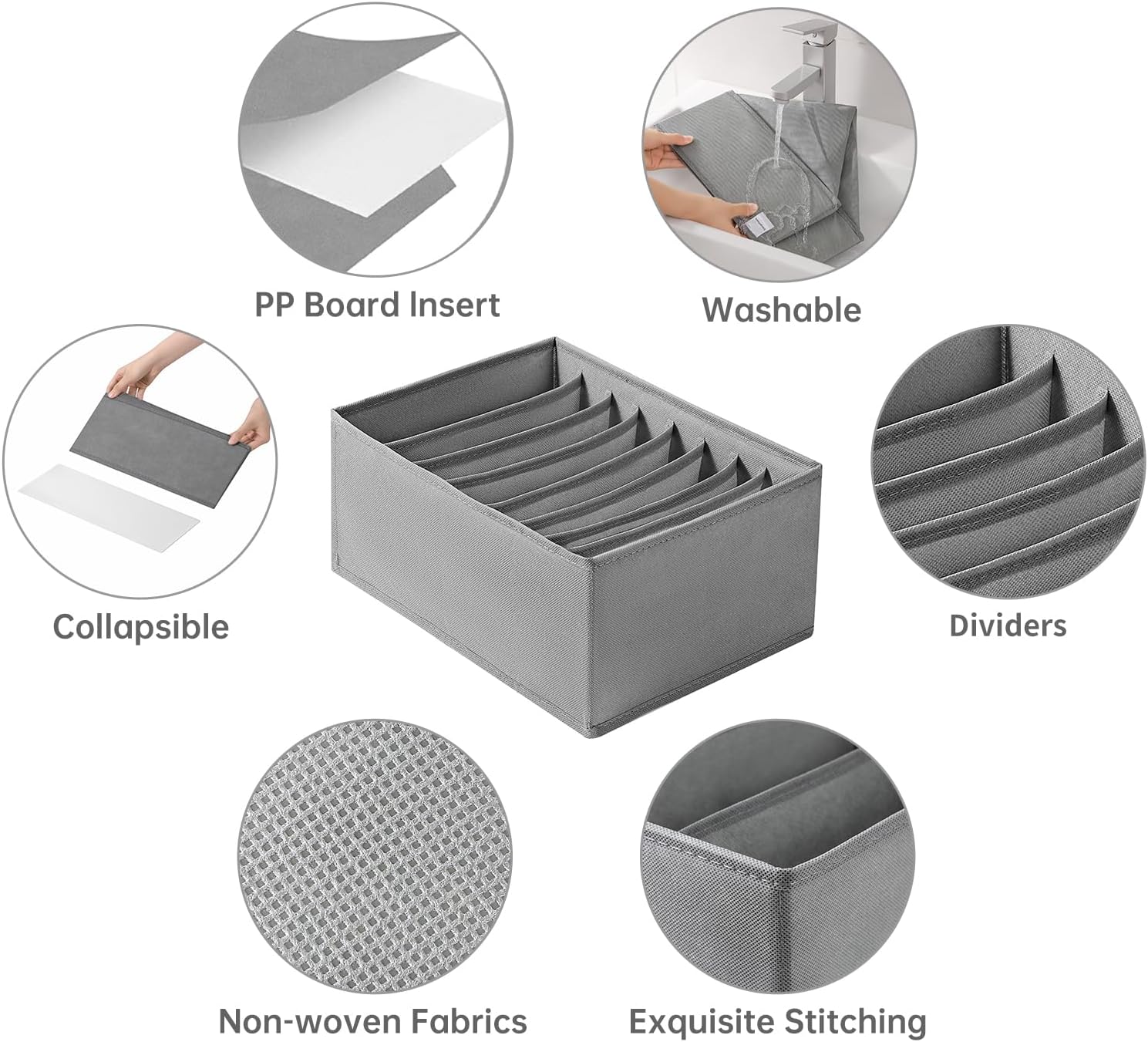 • 【8 Grids Divider】Each wardrobe organizer is divided into 8 separate grids, one grid, and one item, which can keep your clothes and closet neat and tidy and easy to pick and place in a short time. Plus, the foldable and stackable design can greatly improve the utilization of wardrobe space.