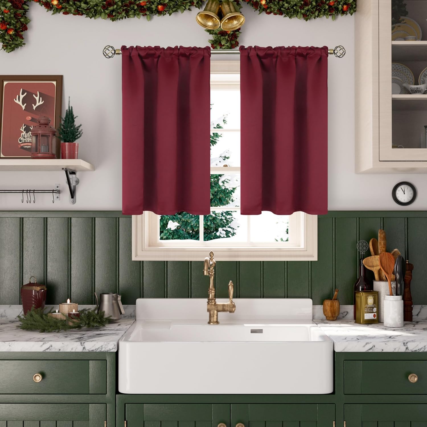 • Package Includes: Set of 2 burgundy blackout curtains; each panel measures 42 Inch wide by 36 Inch long.