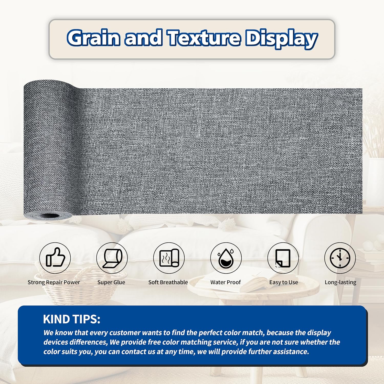 KING MOUNTAIN Linen Repair Patches, Self-Adhesive Fabric Patches, 4 X 63 inch Extra Size, Multi Color, Can be Used for Sofa Repair and Linen Clothes Repair (Grey)
