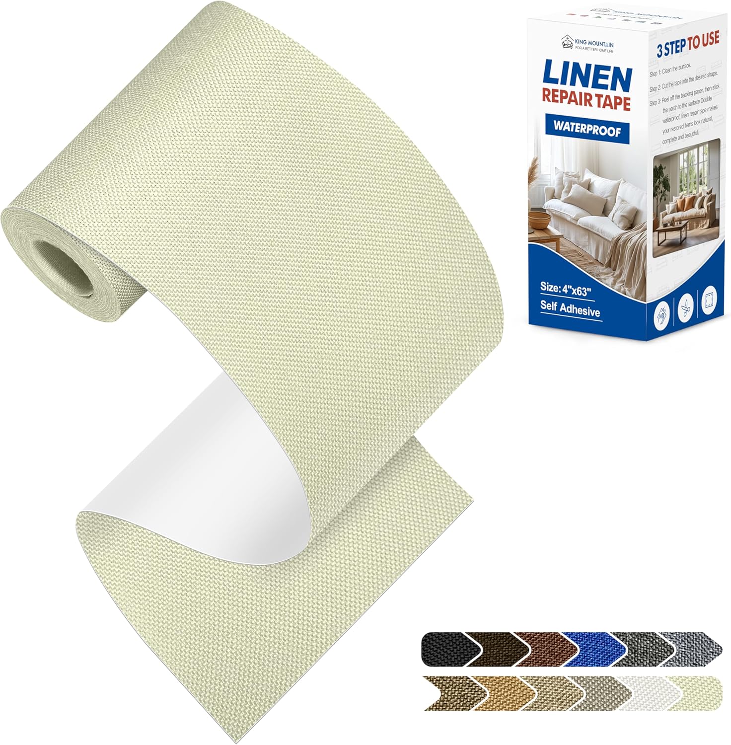 KING MOUNTAIN Linen Repair Patches, Self-Adhesive Fabric Patches, 4 X 63 inch Extra Size, Multi Color, Can be Used for Sofa Repair and Linen Clothes Repair (Beige2.0)