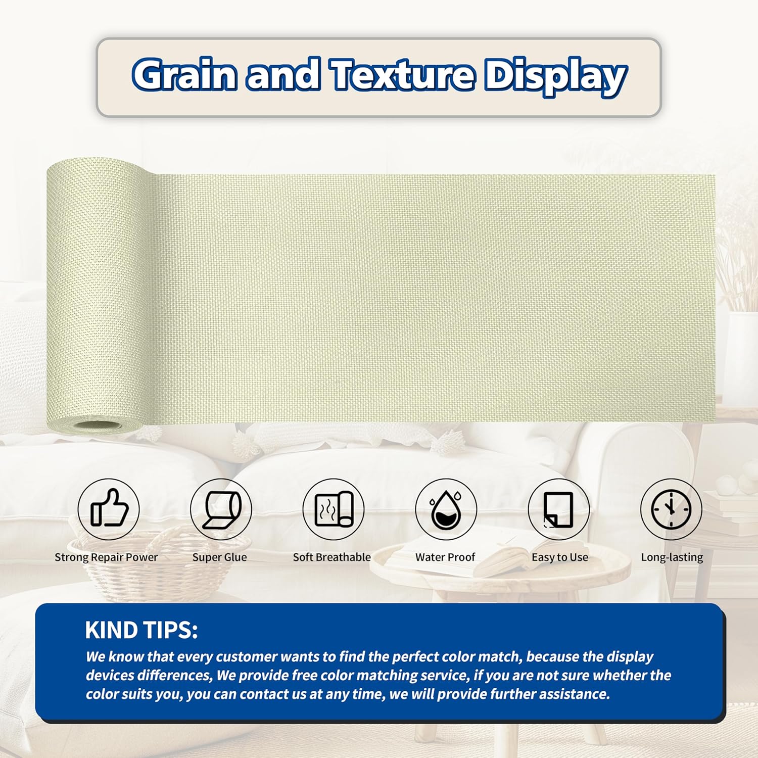 • Easy Application: Clean the damaged area, cut to the appropriate size, peel off the backing paper, and stick it to the damaged area. It only takes a few seconds to complete, and the repair effect is natural and tidy. Suitable for repairing linen products such as sofas, curtains, cushions, furniture, interior decorative fabrics, etc.