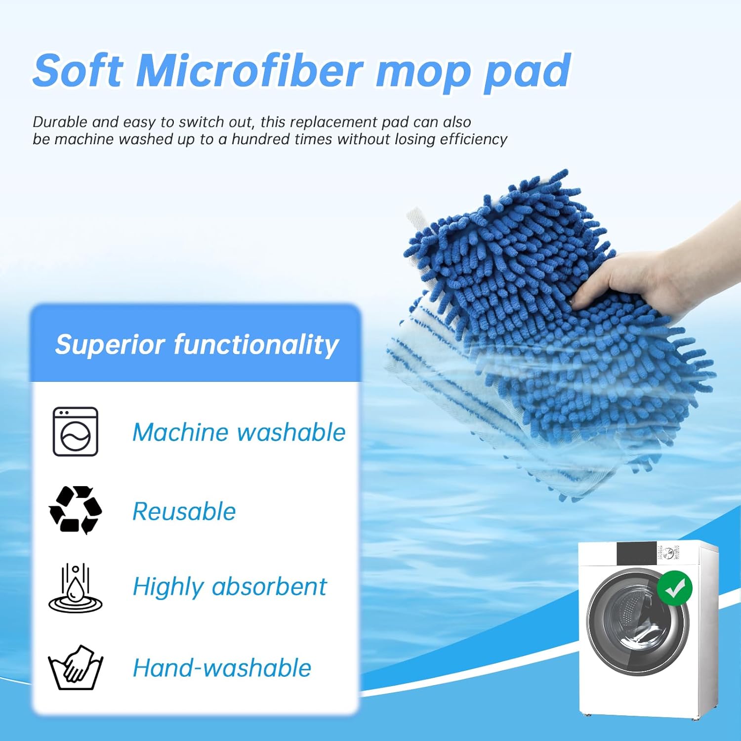• 【Wet & Dry Use Mop Replace Heads】:Microfiber mop replace heads are double-sided,come with chenille and microfiber sides,the chenille fabric side had strong cleaning ability for dry dusting, can easily absorb dust, hair ,pet fur without scratches from floors.the other side microfiber with scrub strips for absorbing water,deep cleaning tough dirts and stains.