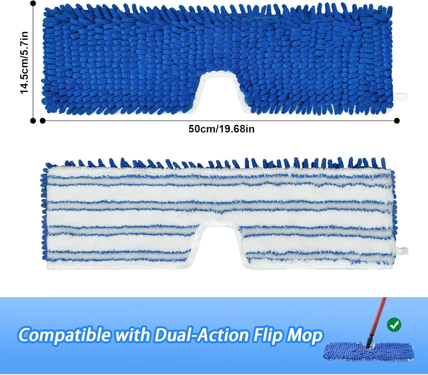 4 Pack Mop Heads Replacements Compatible with O-cedar Dual-Action Flip Mop,Microfiber&Chenille Mop Replace Head for Dry/Wet Use,Double-sided,Reusable and Washable Dust Mop Refills for Floor Cleaning