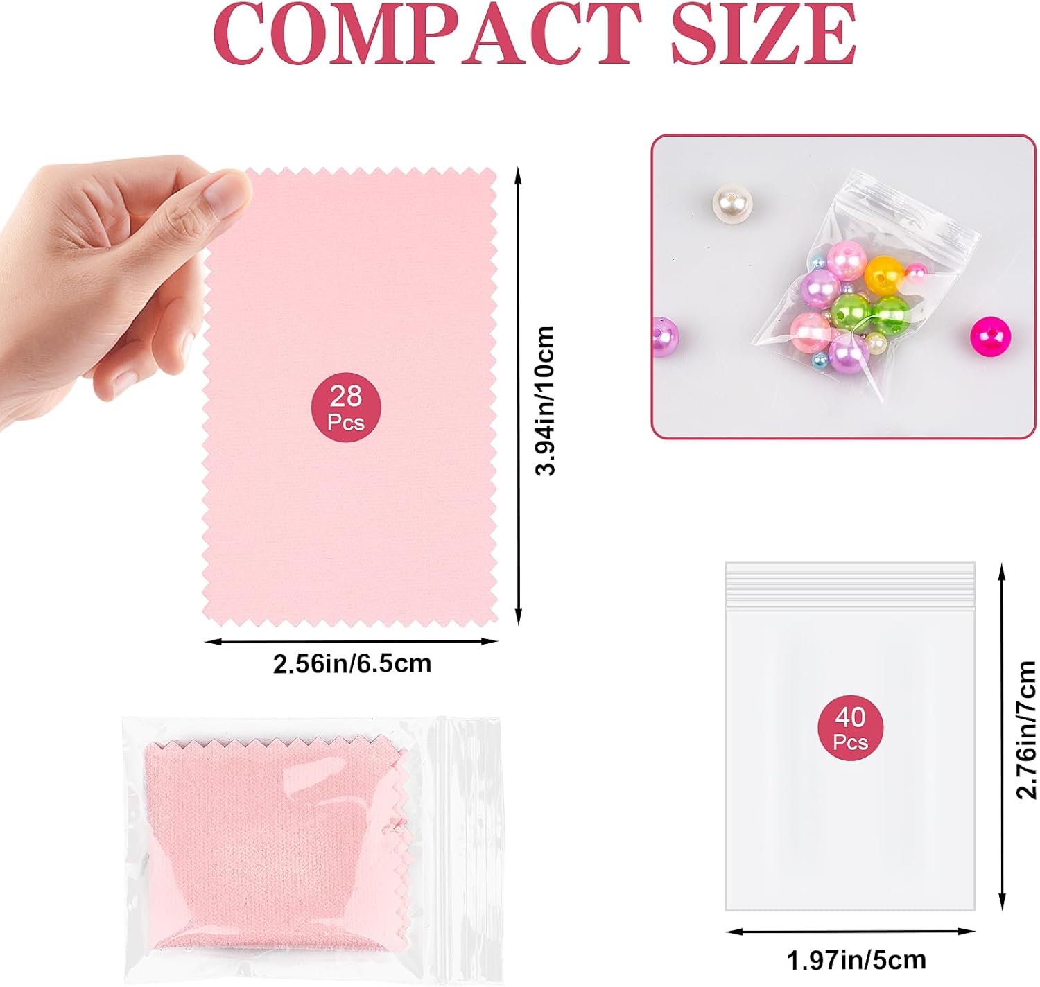 • 【High-quality Materials】- The set includes 28 pink cleaning cloths made of made of suede fabric and 40 clear small plastic bags with a thickness of 2.4 mil (one-side), ensuring long-lasting performance and durability.