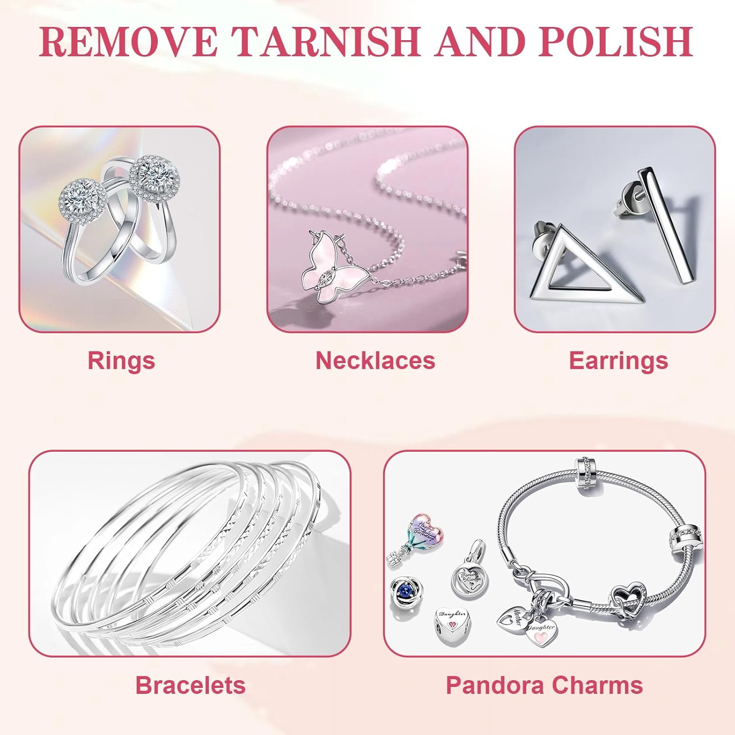• 【Cleaning Made Easy】- The included polishing cloths effectively remove tarnish and dirt from silver jewelry, keeping your pieces looking shiny and new. The small plastic bags provide a convenient way to store and organize jewelry items