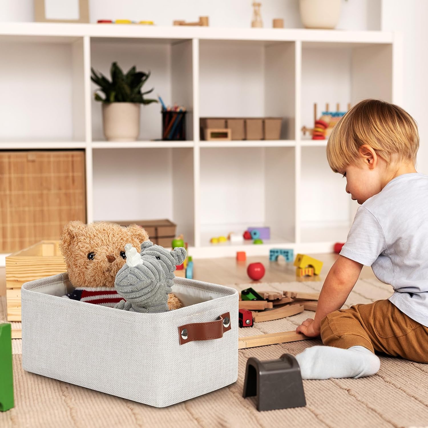 • Premium Material: These storage baskets are made with premium-quality fabric and thickened EVA. Soft&comfortable, sturdy&resistant, lightweight, and easy to use over time. The small collapsible storage bins are more suitable for storing towels and baby clothes.