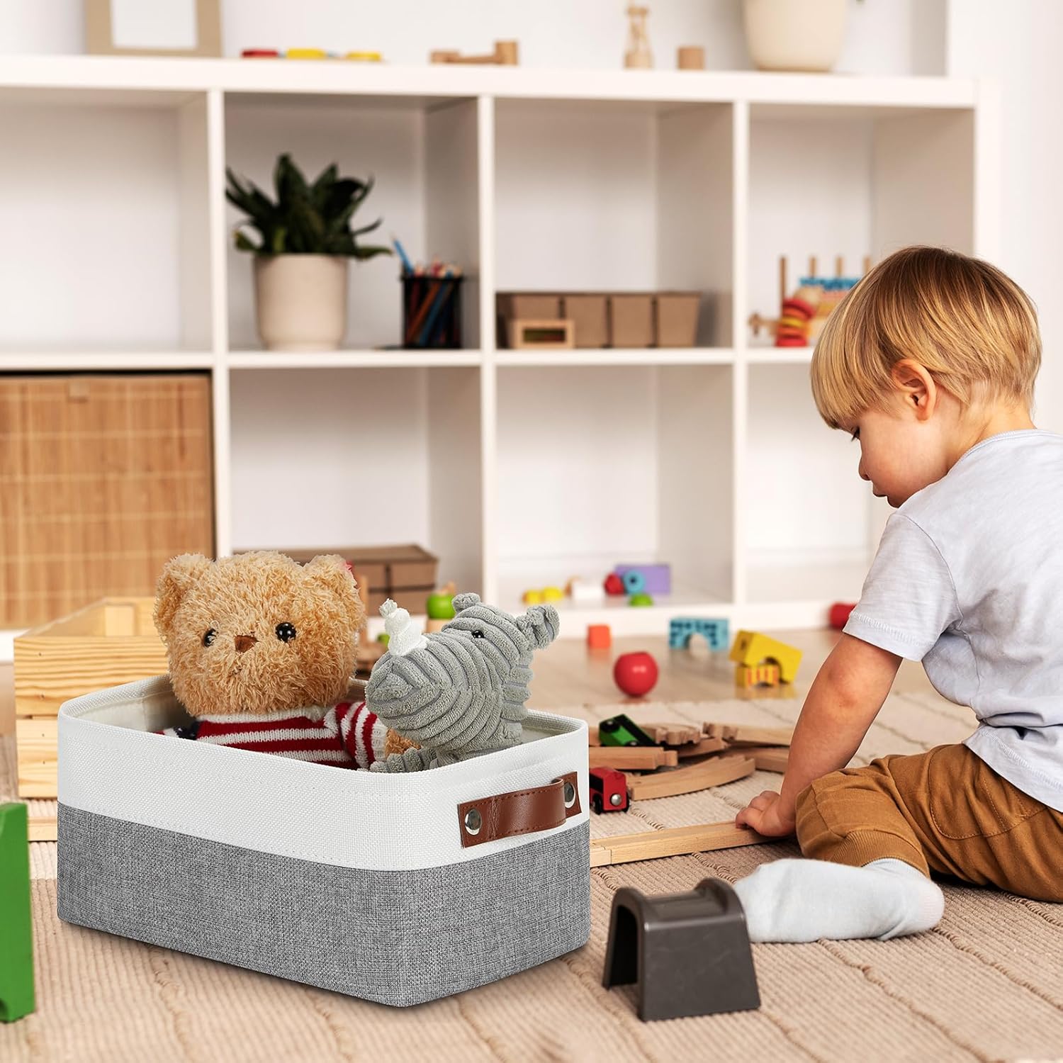 DULLEMELO Storage Baskets for Shelves, Small Fabric Storage Bins with Handles, Decorative Foldable closet storage baskets for organizing shelves(White&Grey, 2 Pack)