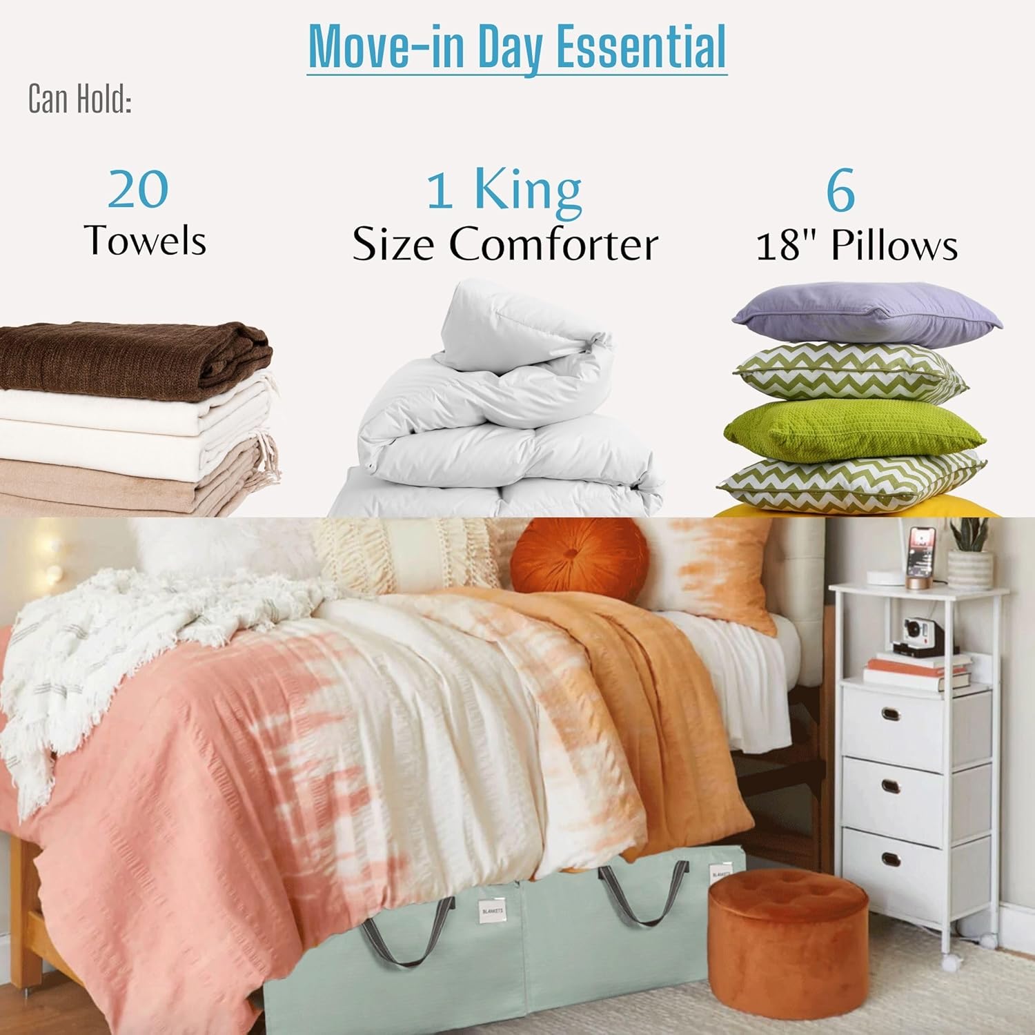 • Multi-Functional:Versatile and multi-purpose, suitable for moving, storing, transporting, laundry, camping, traveling, organizing, space-saving, under-bed storage, small trips, etc. Ideal for moving into your new apartment or college dorm room, storing winter clothes and bedding in your wardrobe, and keeping pillows and blankets clean and dust-free for guests during RV trips. Great for storage in your closet, garage, basement, attic, or storage unit.