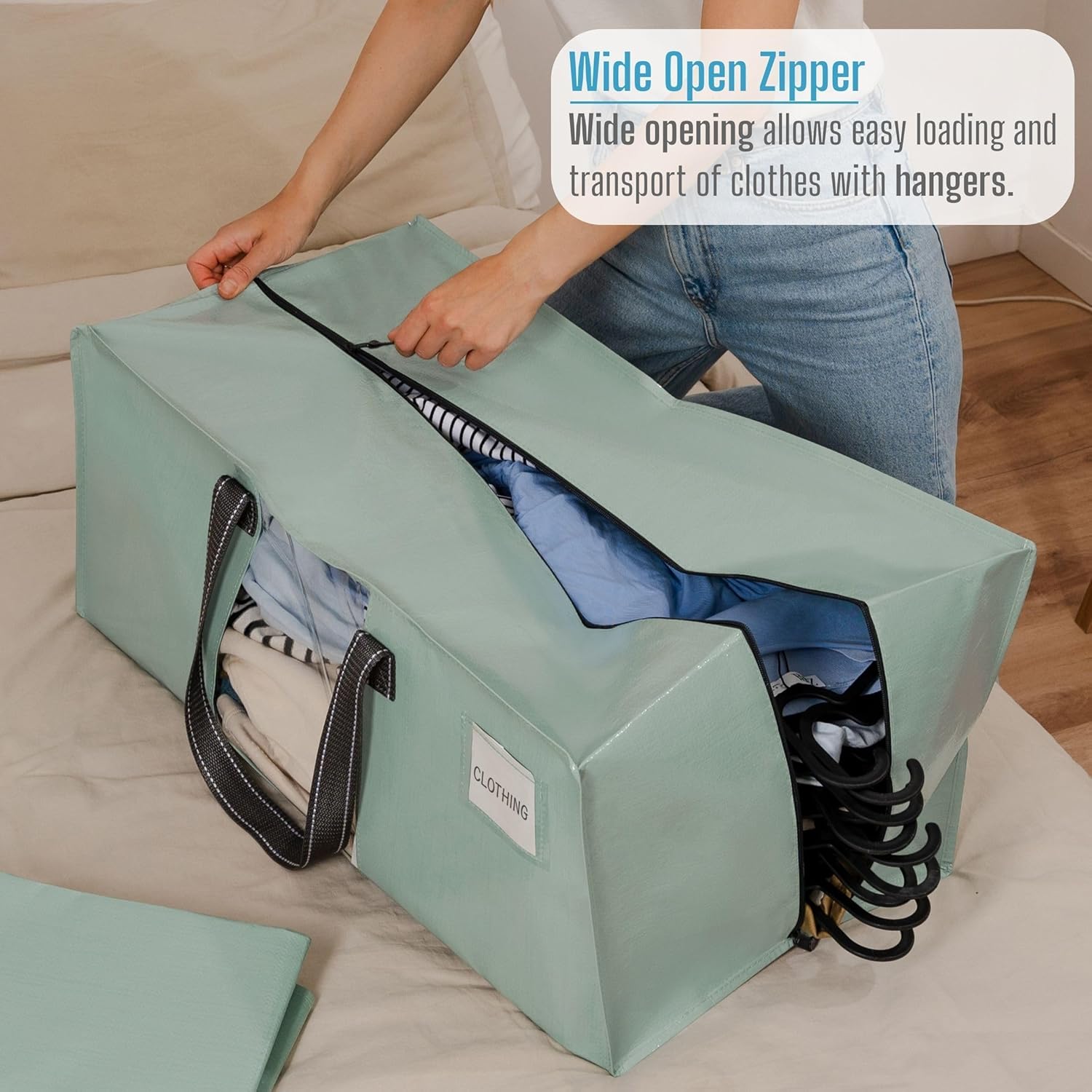 VENO 4 Pack Moving Bags for College, Heavy-Duty Storage Totes, Moving Boxes and Wardrobe Packing Supplies Alternative - Extra Large Durable Laundry Bags for Clothes (Shiny Light Green, 4 Pack)