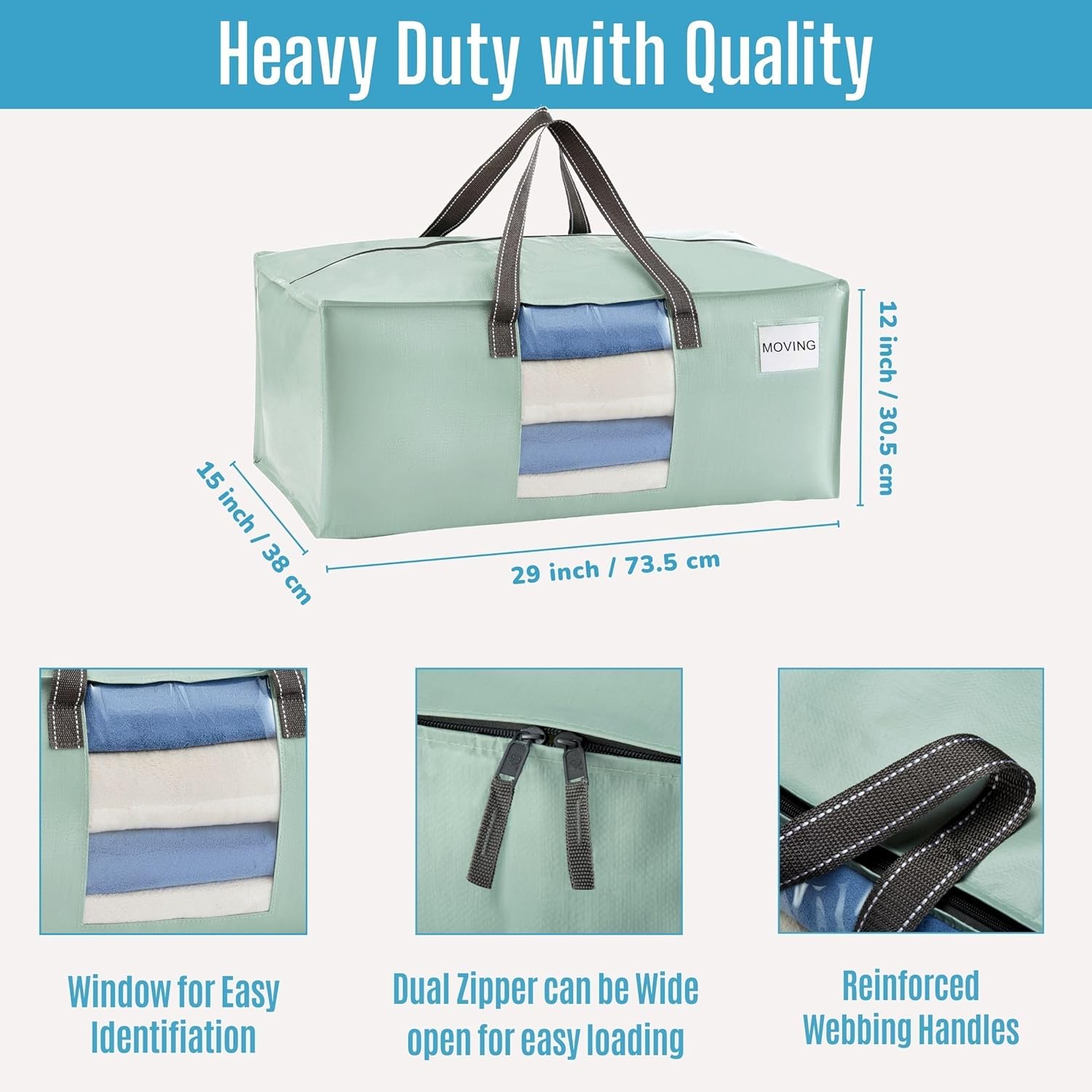 • Instant Identification – Featuring a transparent (window) design alongside a handy tag pocket, this storage bag simplifies identifying the contents within, ensuring swift access to your stored items, be it college dorm essentials, camping gear, or various household items. Ideal for moving, organizing, and storage tasks, this versatile bag guarantees that no matter where you store your belongings, they remain neatly organized and easily identifiable.