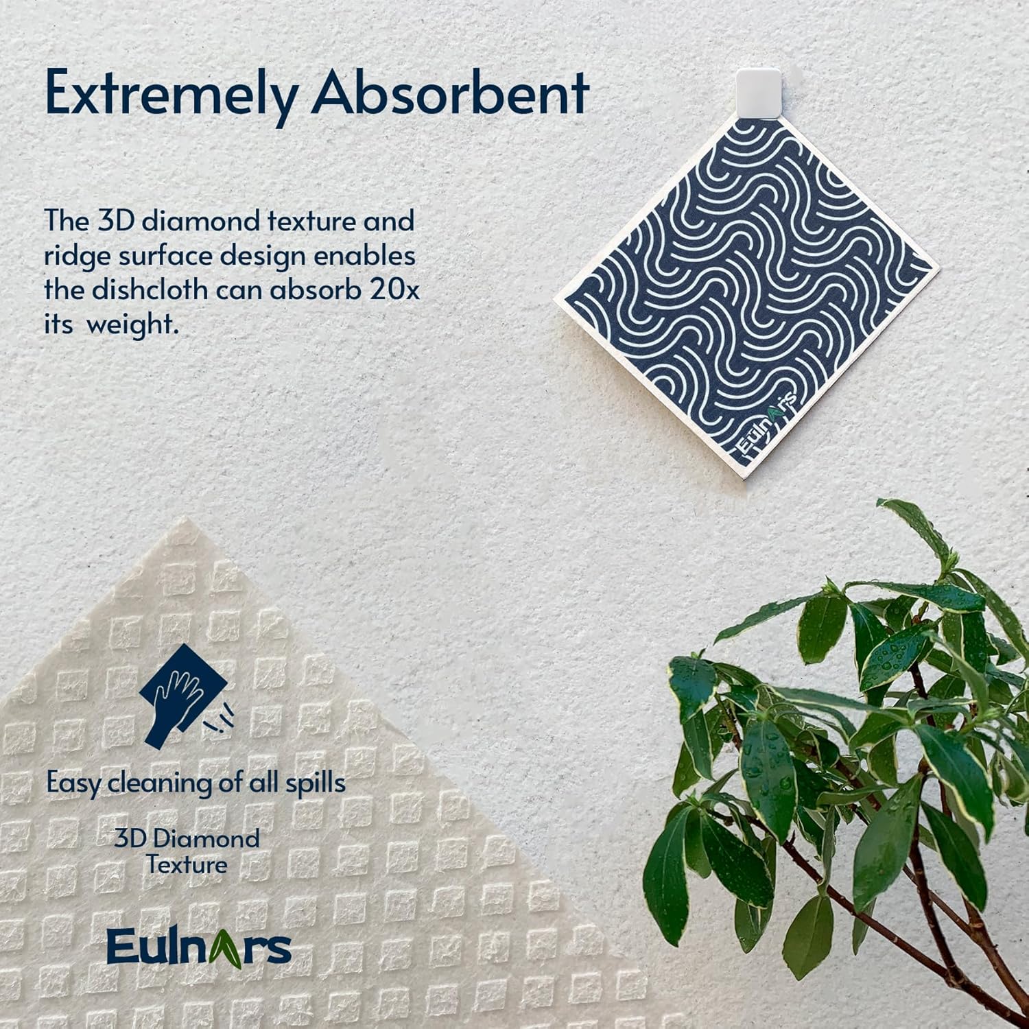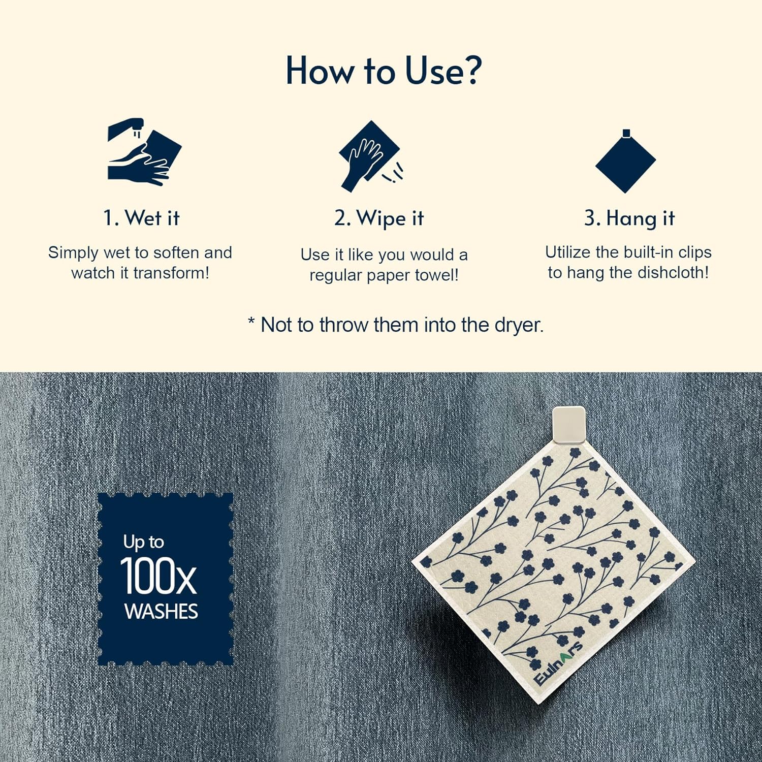 • Washable and Resuable: Tested to be reusable up to 200 times, our swedish dish rags for washing dishes can replace up to 17 rolls of paper towels. Affordable, durable, and easy to care for, they offer a long-lasting alternative to disposable paper towels