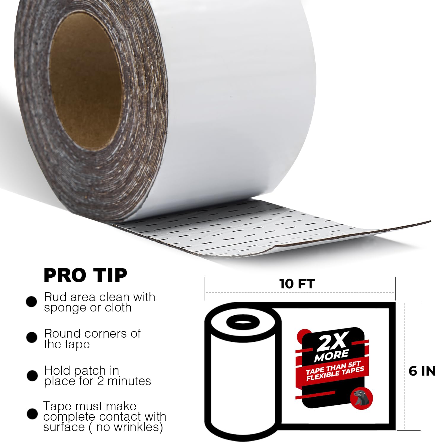 White RV Roof Sealant Tape, 6" x 10' Waterproof Repair Seal Tape – Extra Thick, UV-Resistant, Weatherproof Patch for Permanent Leak Sealing on RVs, Trailers, and Mobile Homes