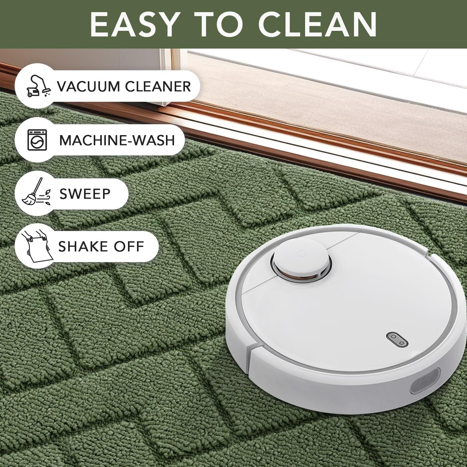 • EASY TO CLEAN: The unique rib fabric design removes dirt from shoes easily. When your doormat gets dirty, first shake it off outdoors or over your garbage bins, then sweep with a broom or vacuum regularly or use a garden hose to rinse the mat outdoors. For deeper clean: machine washable, use water under 86 (℉) / 30 (℃). Do not iron. Do not bleach. Do not expose it to the sun for a long time.