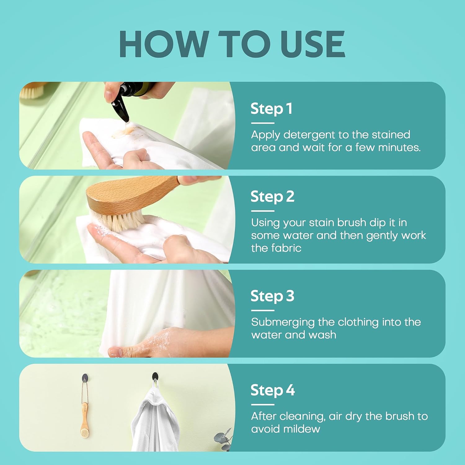 • Reduce Waste: Don’t discard garments with small stains! Our stain brush helps work detergent and stain remover deep into fabric fibers, allowing the remover to effectively lift stains. Your garments will look clean and fresh, ready to wear for years