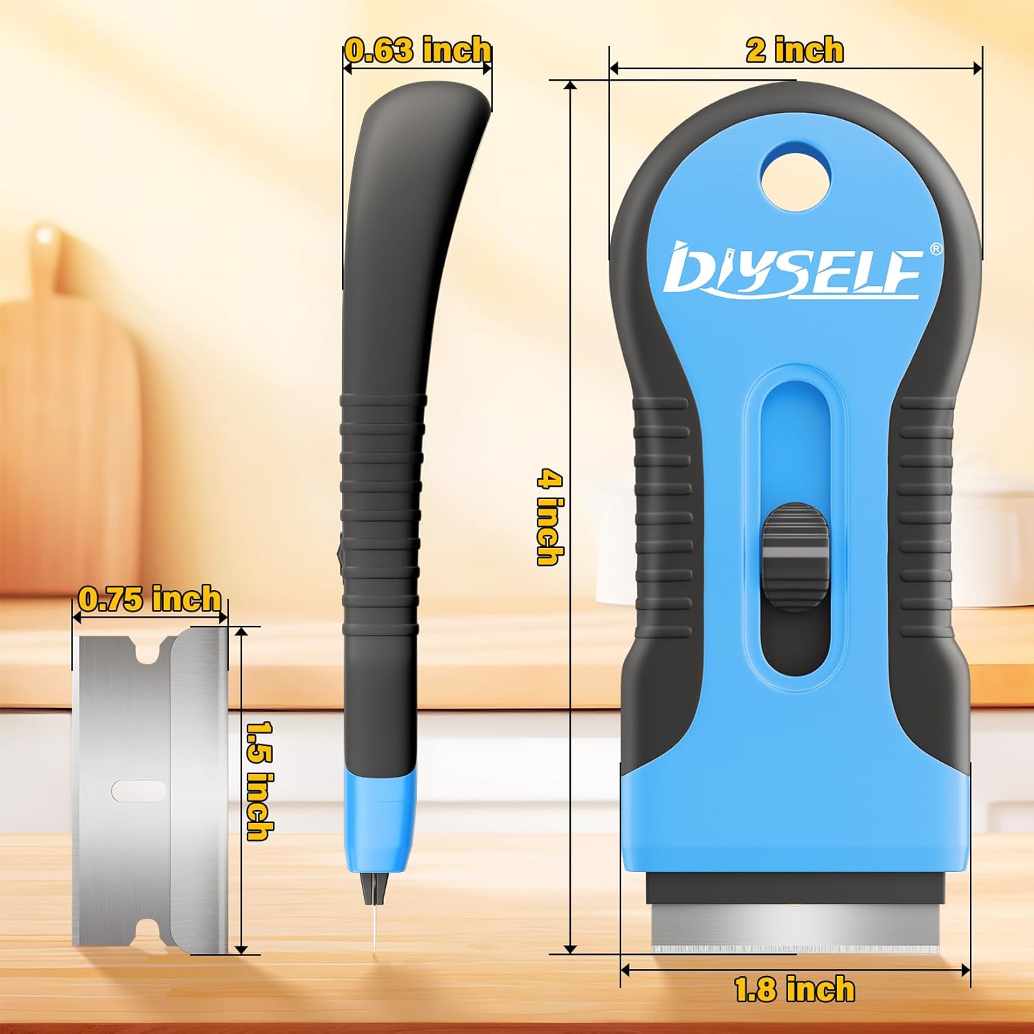 DIYSELF 2 Pack Razor Blade Scraper with 10 PCS Replacement Mental Blades, Heavy-Duty Razor Scraper, Professional-Grade Razor Blade Scraper Tool, Reliable Glass Scraper for Cooktop, Kitchen, Oven