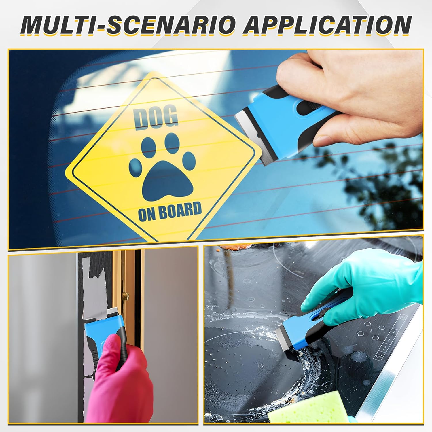 • Multi-Purpose Scraper for Cleaning: This razor scraper tool for glass is perfect for tackling tough cleaning tasks on glass, ceramic, metal, and more. It efficiently removes burnt food from stovetops, stubborn stickers from car windows, and old paint or caulk from walls and floors. Whether you're working in the kitchen, bathroom, or garage, this glass top stove scraper tool for glass provides a reliable solution for removing unwanted residues and debris.