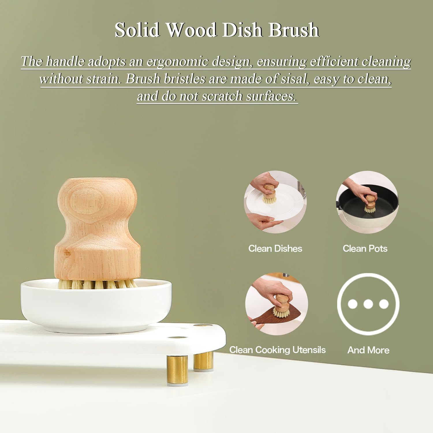 • [Complete Kitchen Cleaning Solution] This set includes one kitchen dish soap dispenser, one hand soap dispenser, a kitchen dish brush, and a ceramic brush holder, all neatly arranged on a stone drying tray.