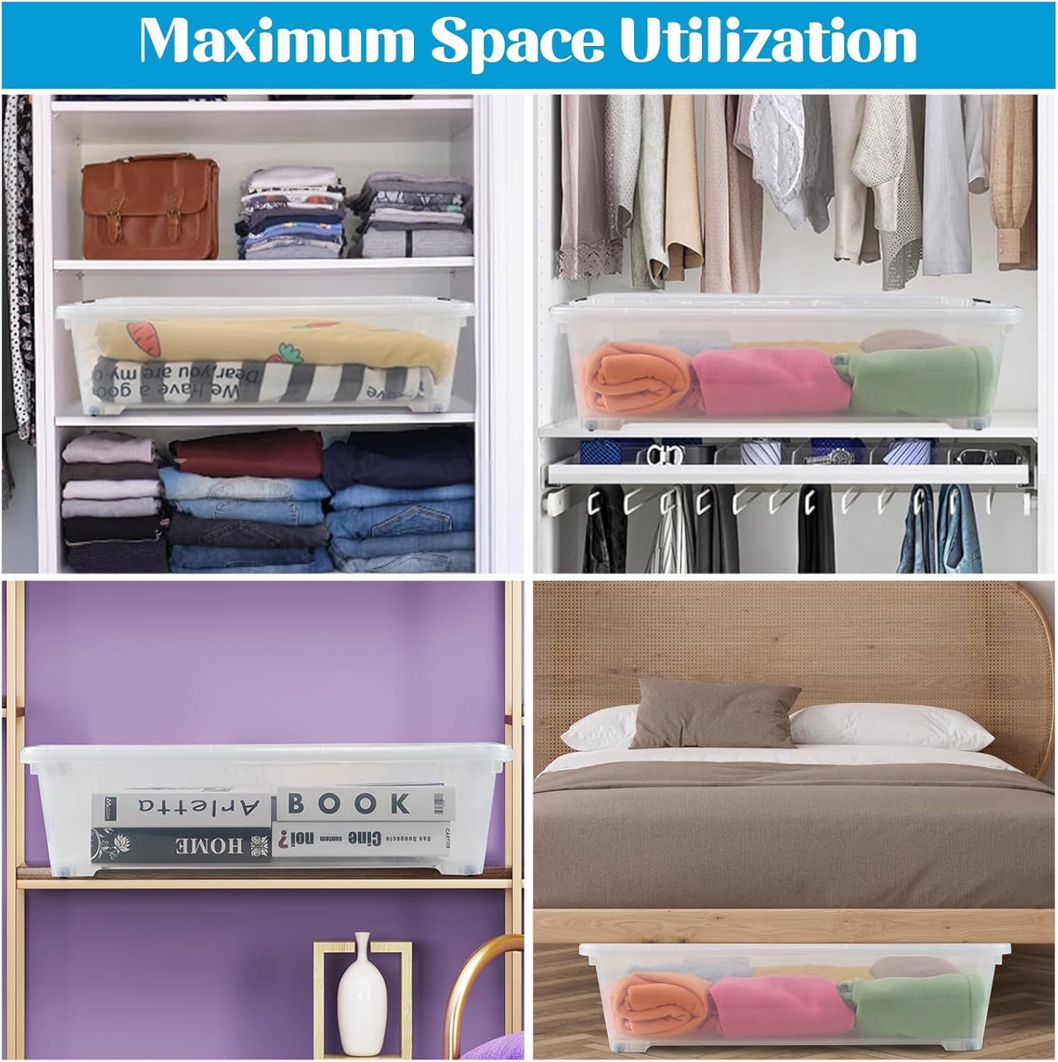 Kiddream 3-Pack 50 Quart Plastic Underbed Storage Bins with Lids/Wheels, Large Clear Storage Box