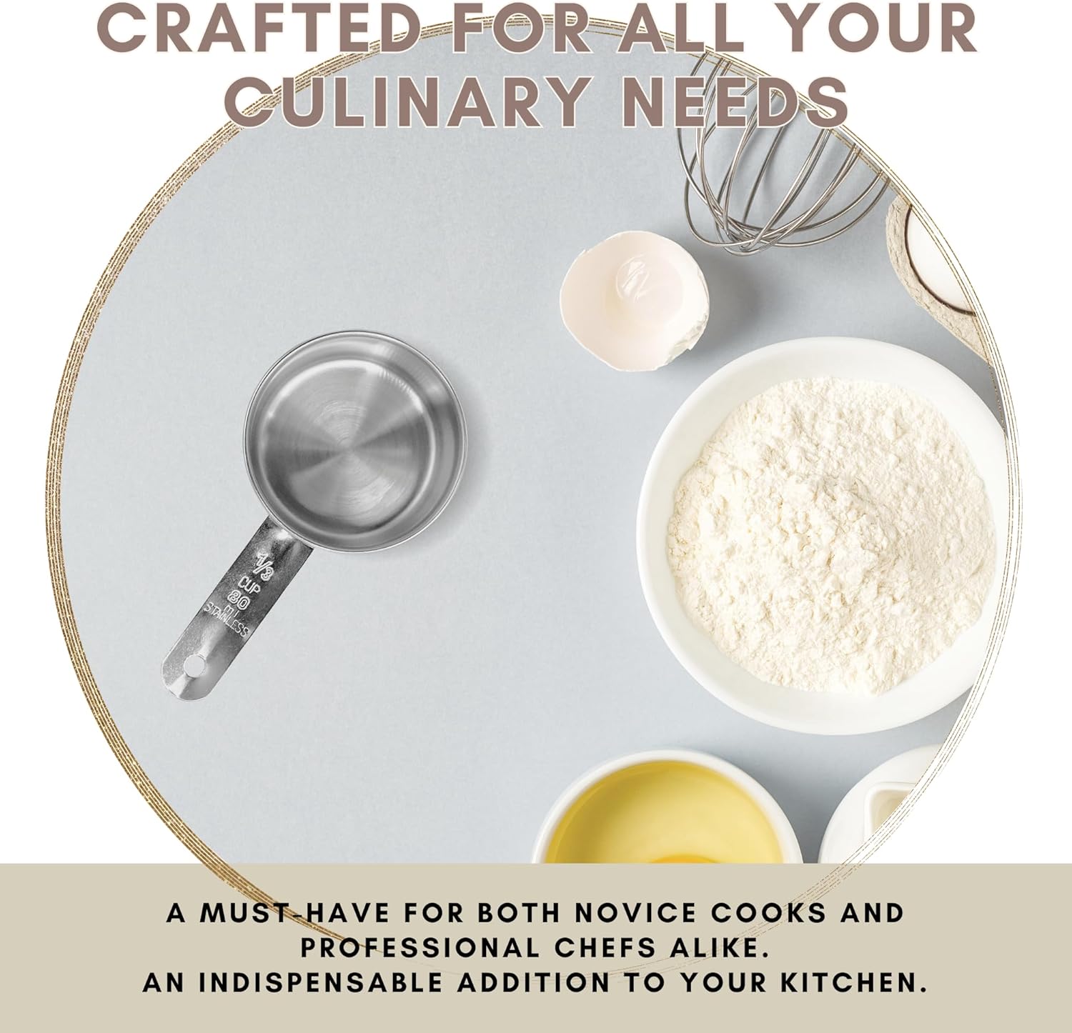 • Easy Maintenance - Cleaning this stainless steel measuring cup is quick and hassle-free, thanks to its dishwasher-safe, polished, and non-porous surface that resists sticky food buildup, oils, odors, and stains. Even stubborn ingredients like syrup, peanut butter, or cooking grease rinse off easily. Use it daily for baking, cooking, or scooping dry dog food. It nests neatly with other cups, keeping your kitchen drawers and prep areas clean, tidy, and organized.