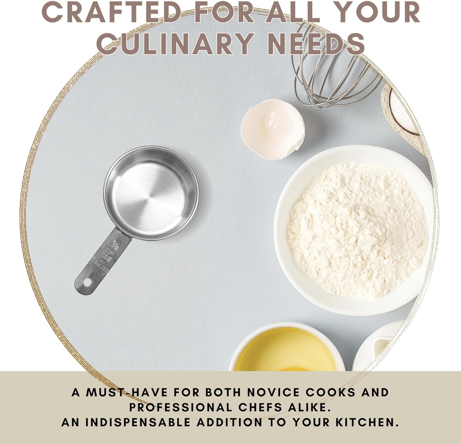 • Easy Maintenance - Cleaning this stainless steel measuring cup is quick and hassle-free, thanks to its dishwasher-safe, polished, and non-porous surface that resists sticky food buildup, oils, odors, and stains. Even stubborn ingredients like syrup, peanut butter, or cooking grease rinse off easily. Use it daily for baking, cooking, or scooping dry dog food. It nests neatly with other cups, keeping your kitchen drawers and prep areas clean, tidy, and organized.