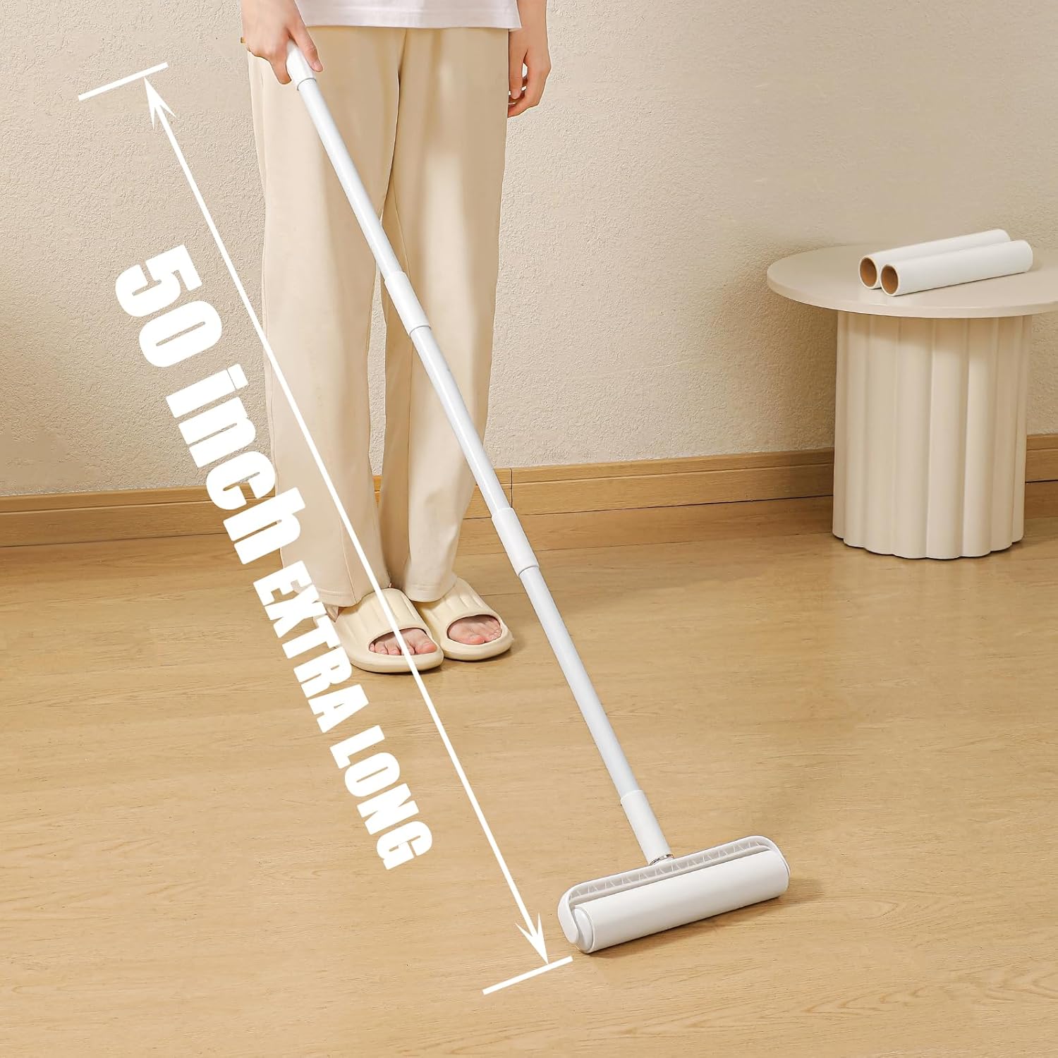 • Extra Long Handle Floor Lint Roller - No Need to Bend Over, Also Great for Couch Carpet Bed Curtain