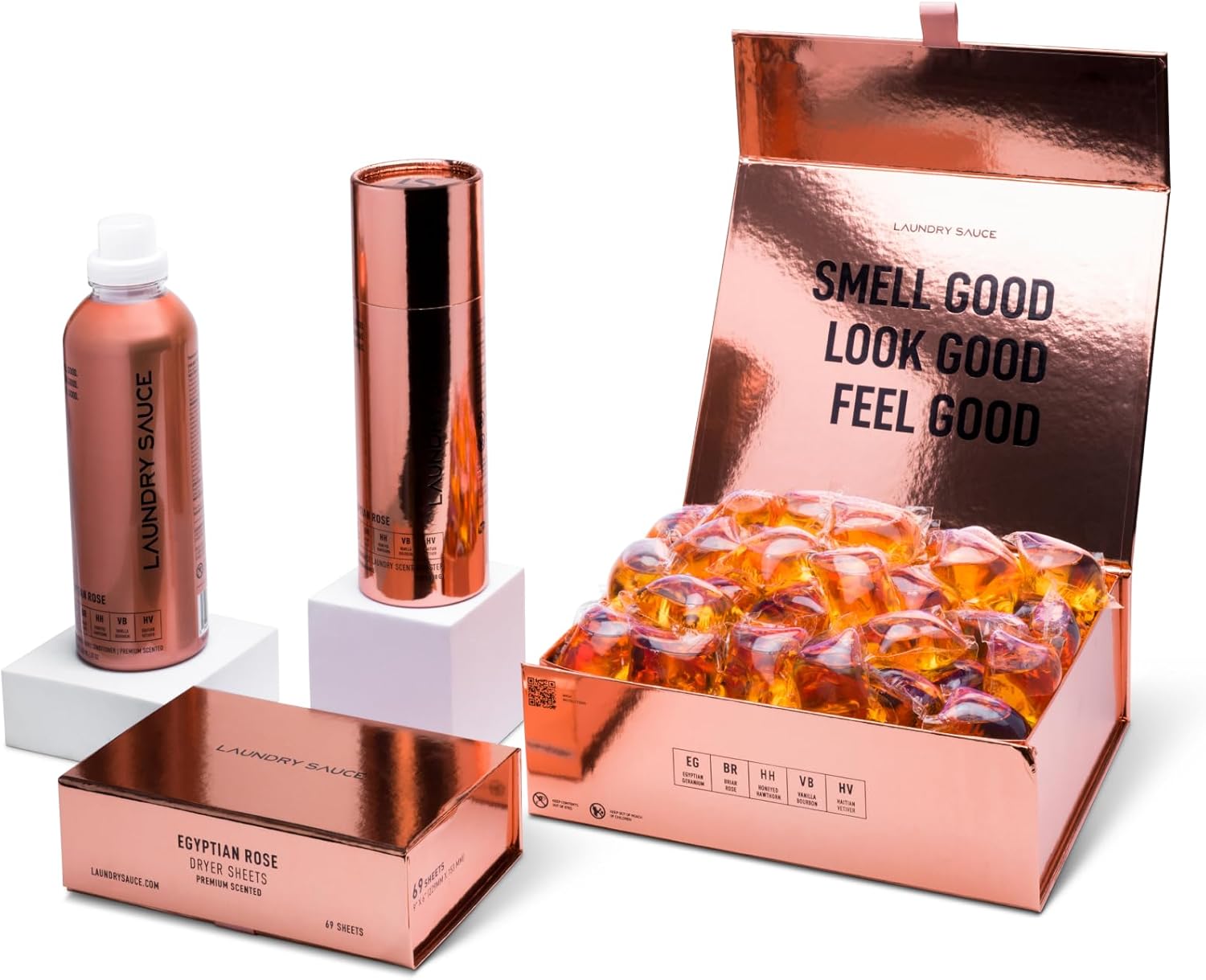 Laundry Sauce - Signature Bundle Egyptian Rose, Scented Laundry Detergent Pods & Scent Booster, Fabric Softener, Dryer Sheets, Fabric Protection, Essential Oils, Long Lasting Luxury Fragrance