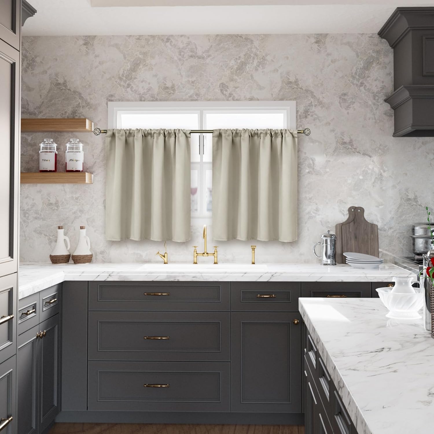 BGment Short Blackout Curtains 36 Inches Length for Basement Kitchen - Rod Pocket Thermal Insulated Room Darkening Window Drapes for Bathroom Camper, Light Camel, 2 Panels, 42 x 36 Inch