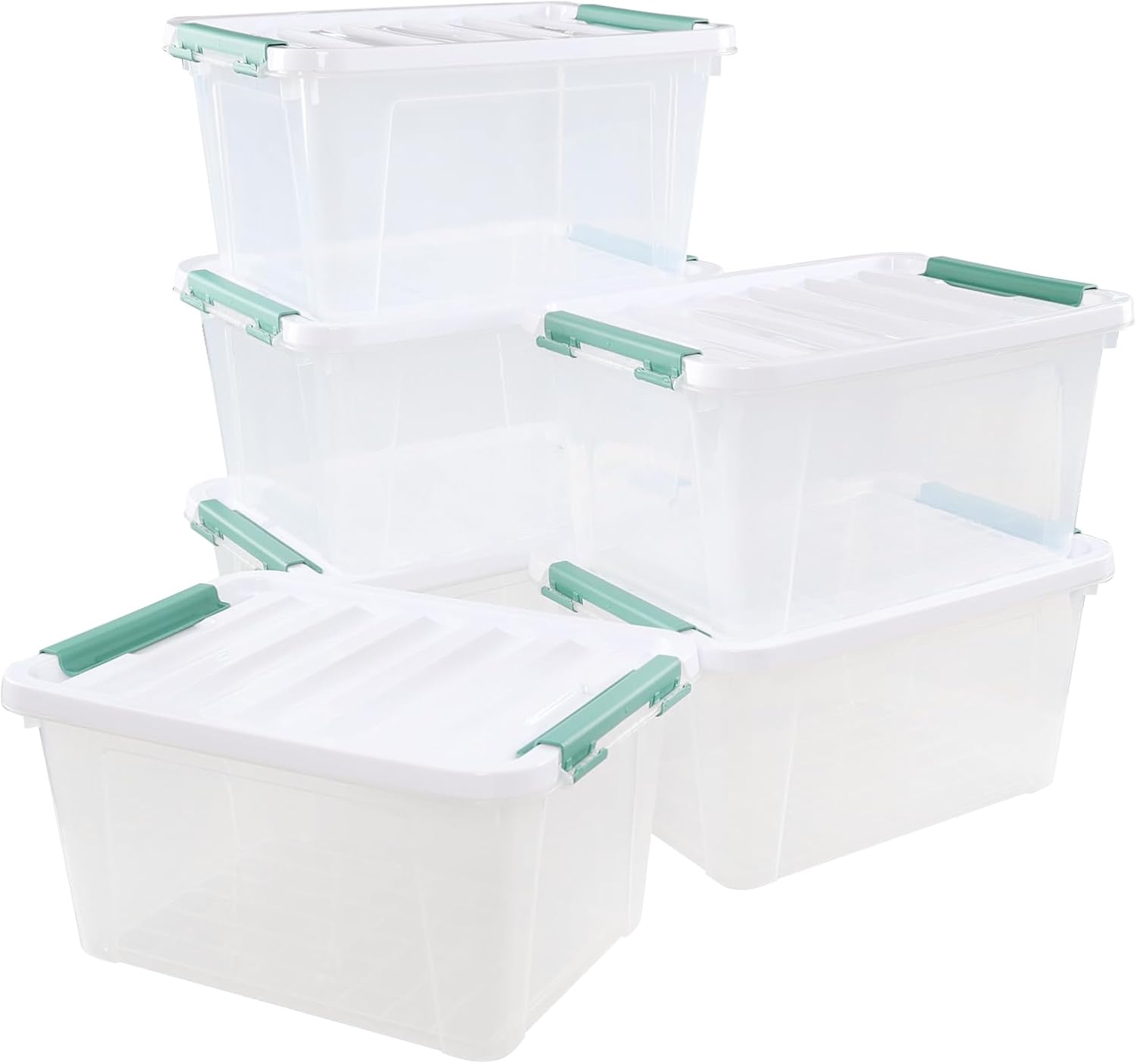 6-Pack Clear Storage Latch Bins, 20 L Plastic Storage Boxes