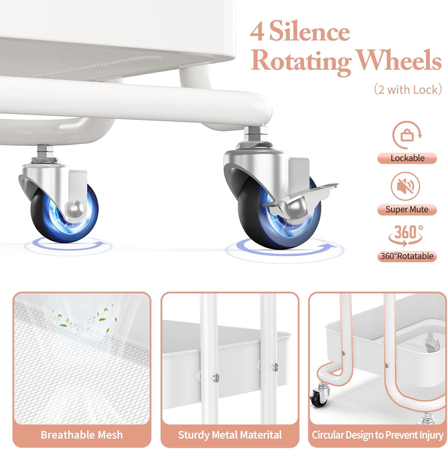• 【Perfect Rolling Carts with Wheels】The rolling utility cart equipped with 4 360° rotating wheels, and two of them are lockable, Whether you're navigating tight corners or moving through crowded spaces, this utility carts with wheels effortlessly adapts to various environments. Convenient for your storage.